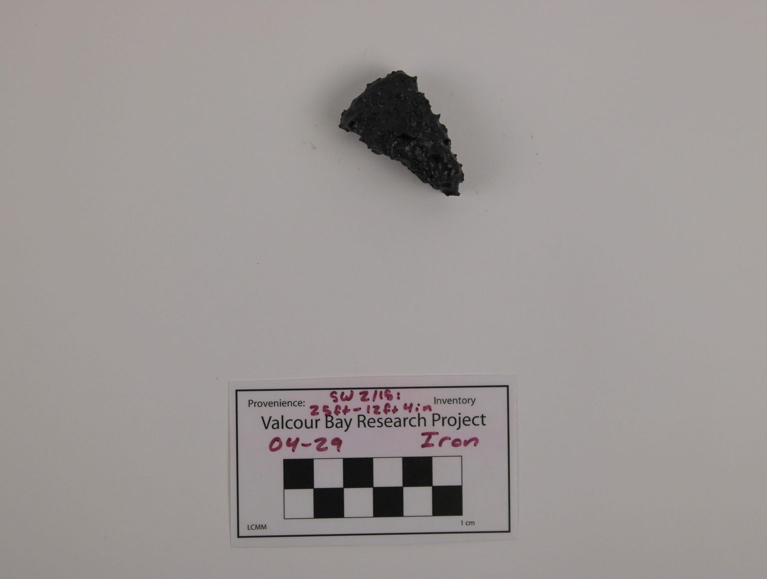 Artifact 04-29 is a fragment of a Howitzer shell. This piece is heavily pitted on both the interior and exterior.