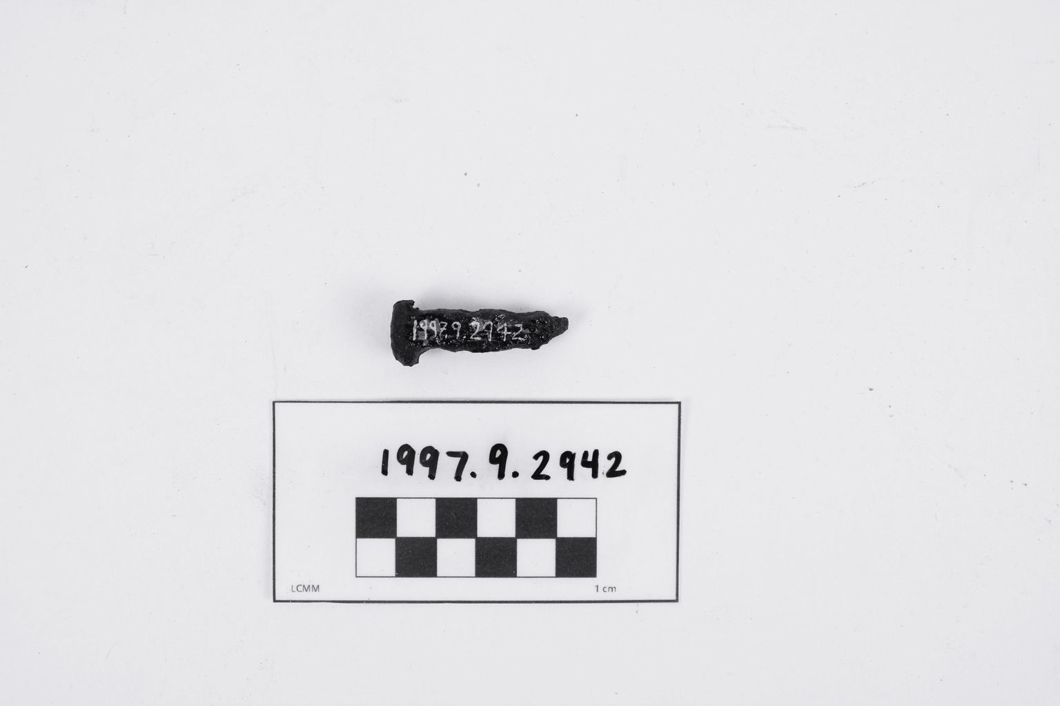 Artifact 1997.9.2942 is a fragment of an iron nail.