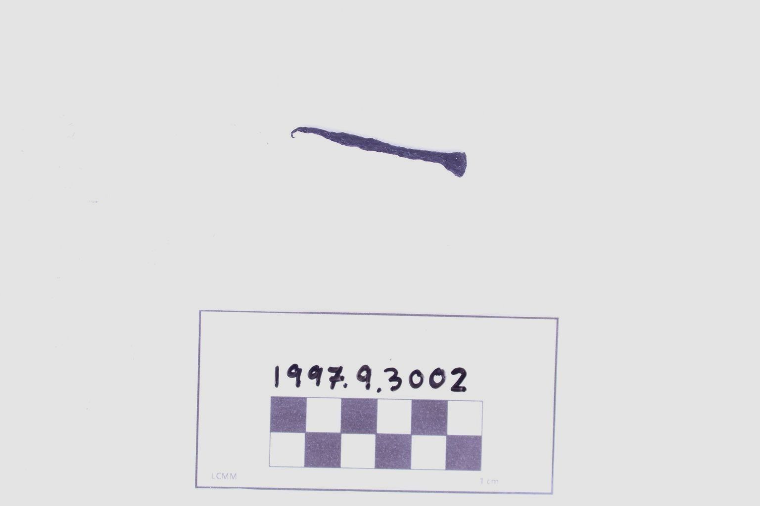 Artifact 1997.9.3002 is a fragment of an iron nail.
