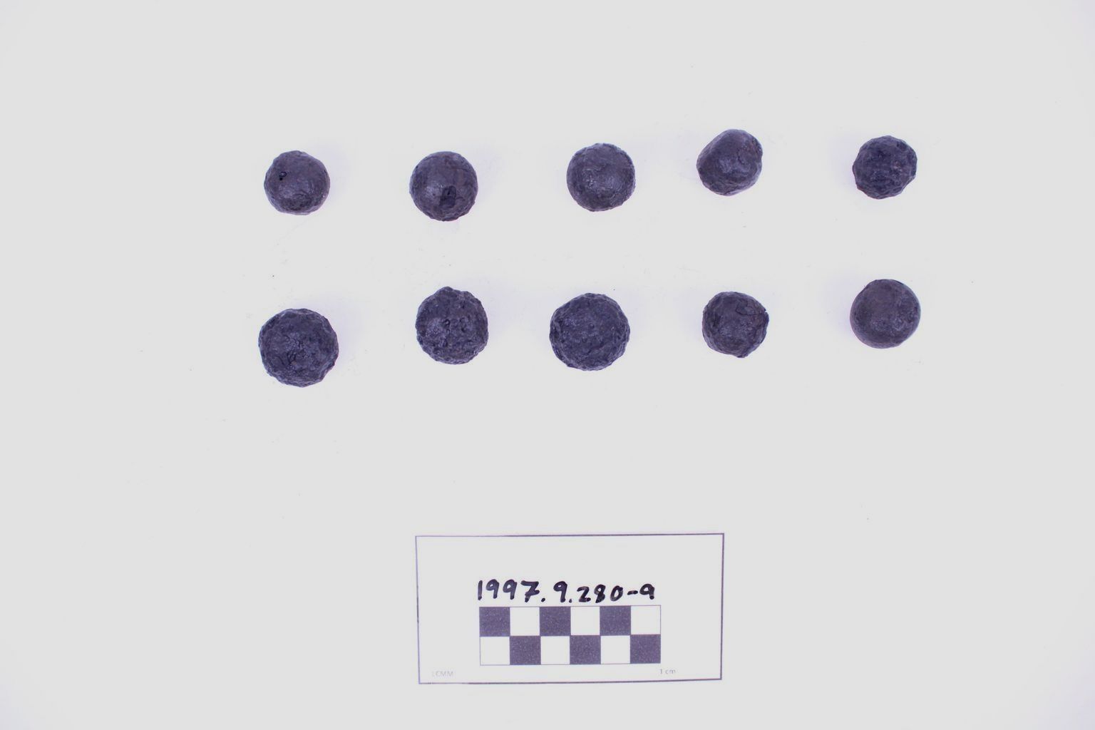 Artifacts 1997.9.0280-029 are a lot of ten (10) iron shot.