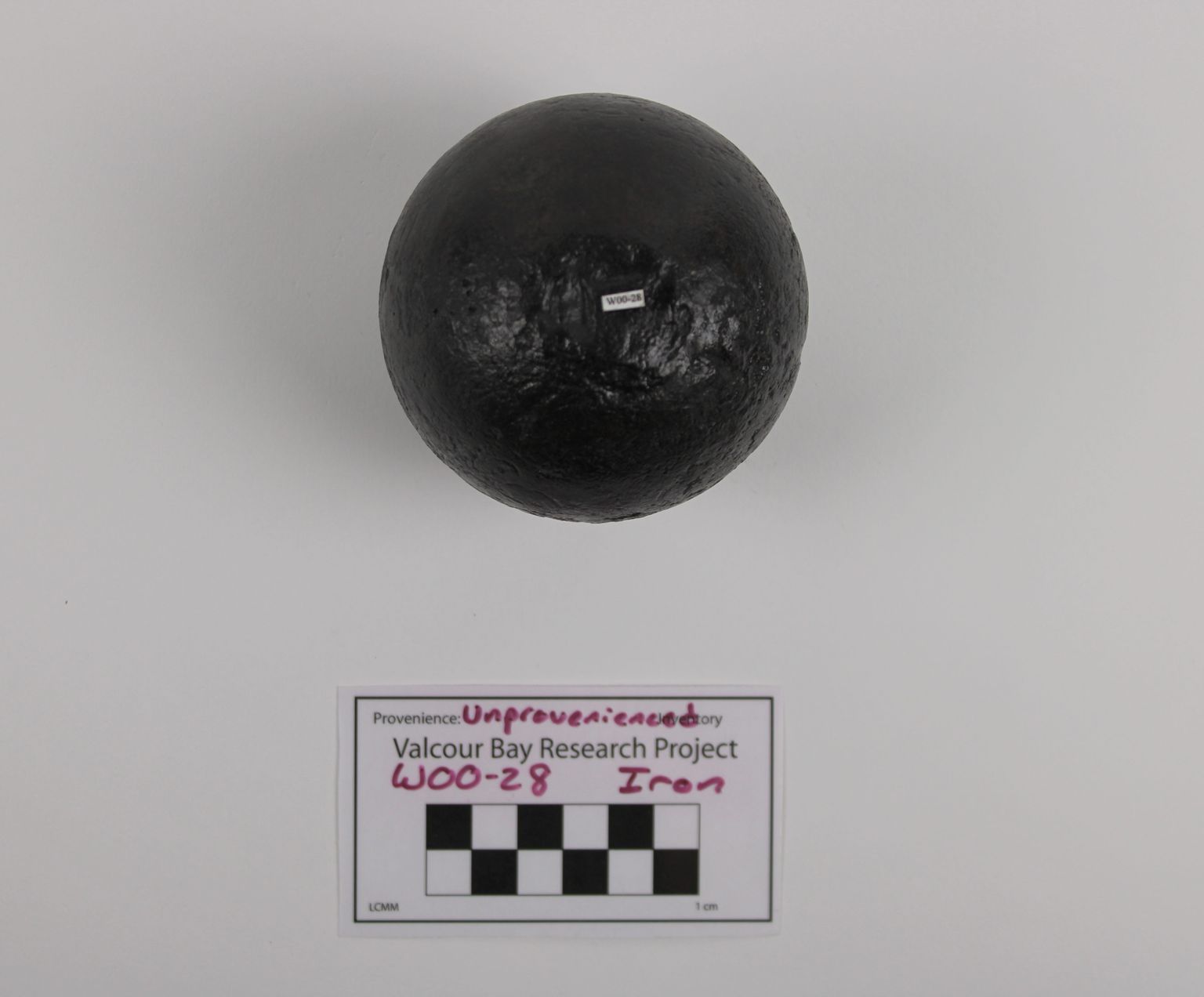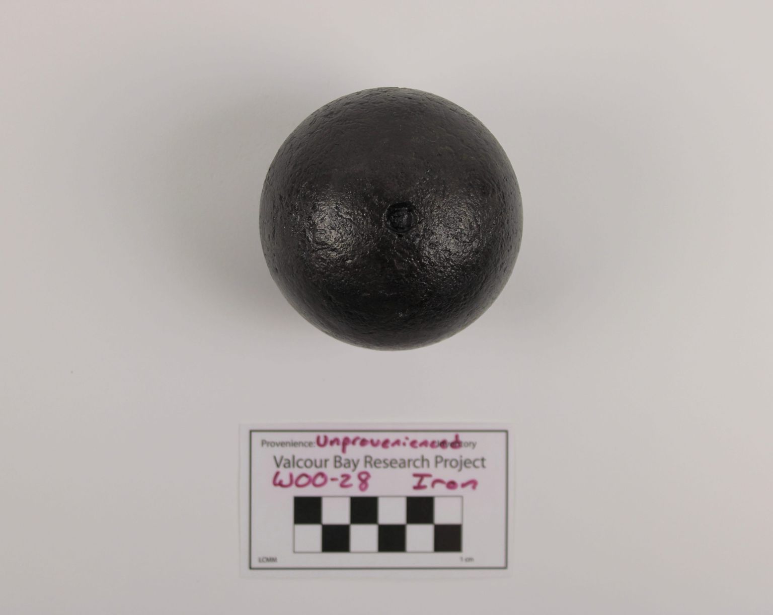 Artifact W00-28 is a 6lb cast-iron round shot.