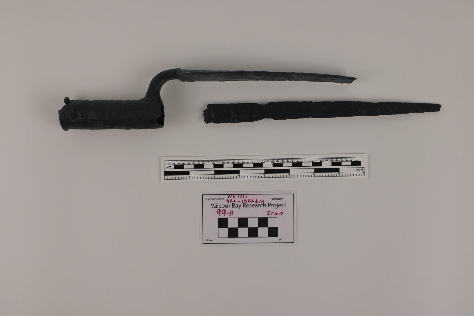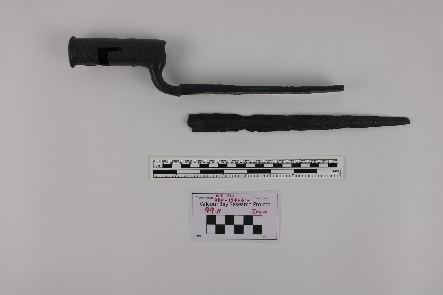 Artifact 99-11 is a British land pattern musket bayonet was blown off the gunboat New York when its cannon exploded. The style of this bayonet suggests it was manufactured between 1735 and 1745.