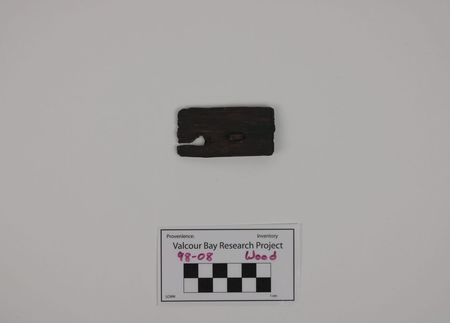 Artifact 99-10 is a wooden shim. It was found together with trunnion bracket.