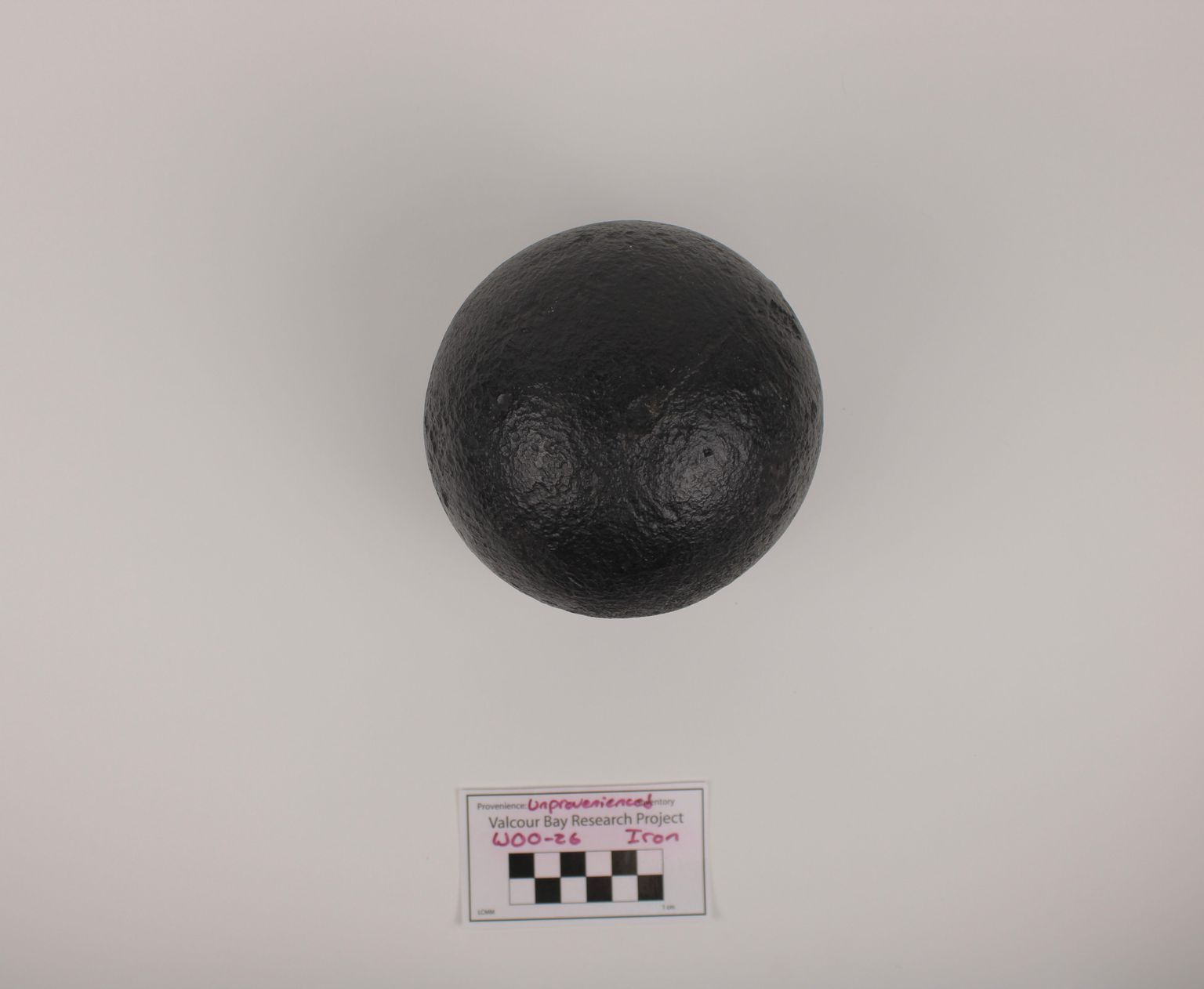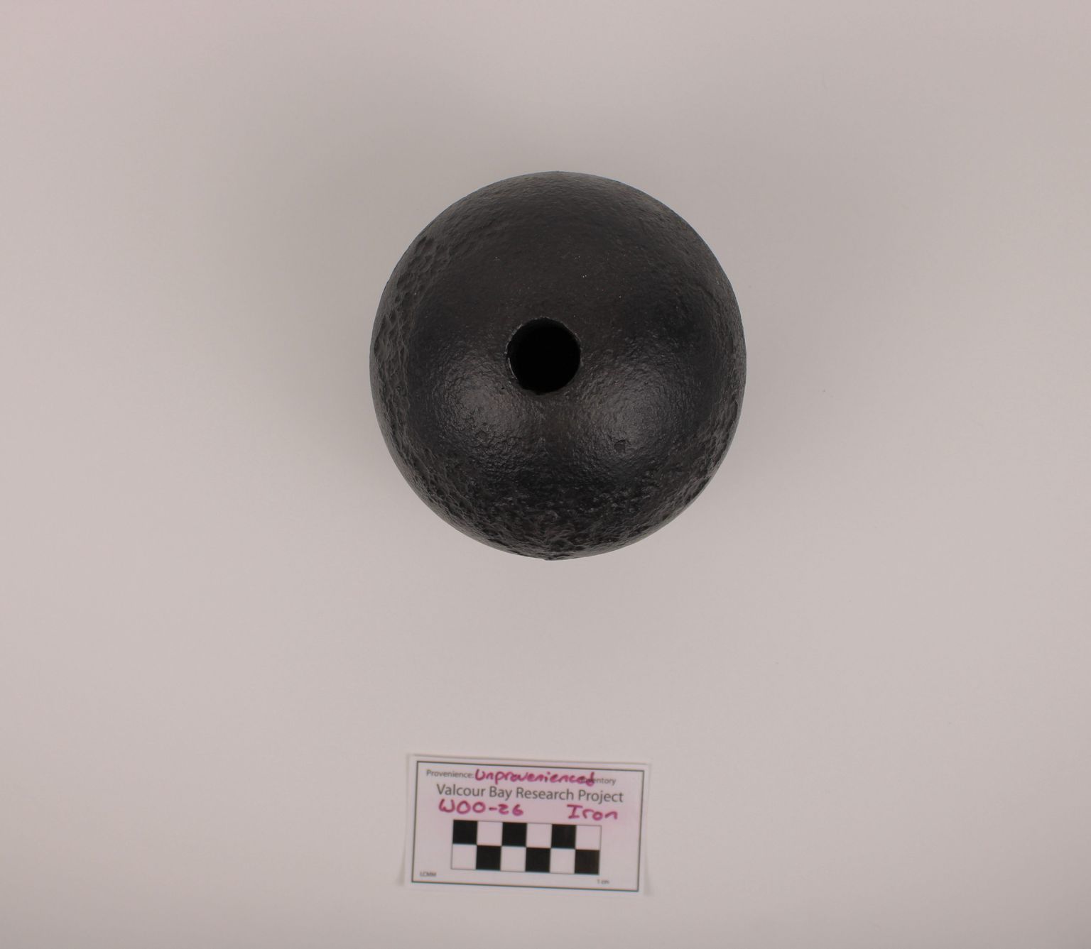 Artifact W00-26 is a 5.5" hollow cast-iron Howitzer shell. There were two British gunboats carrying this armament - the Carcass and the Blast.