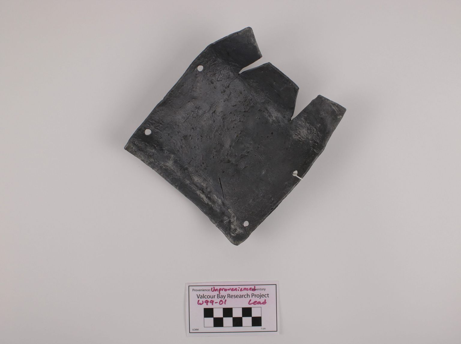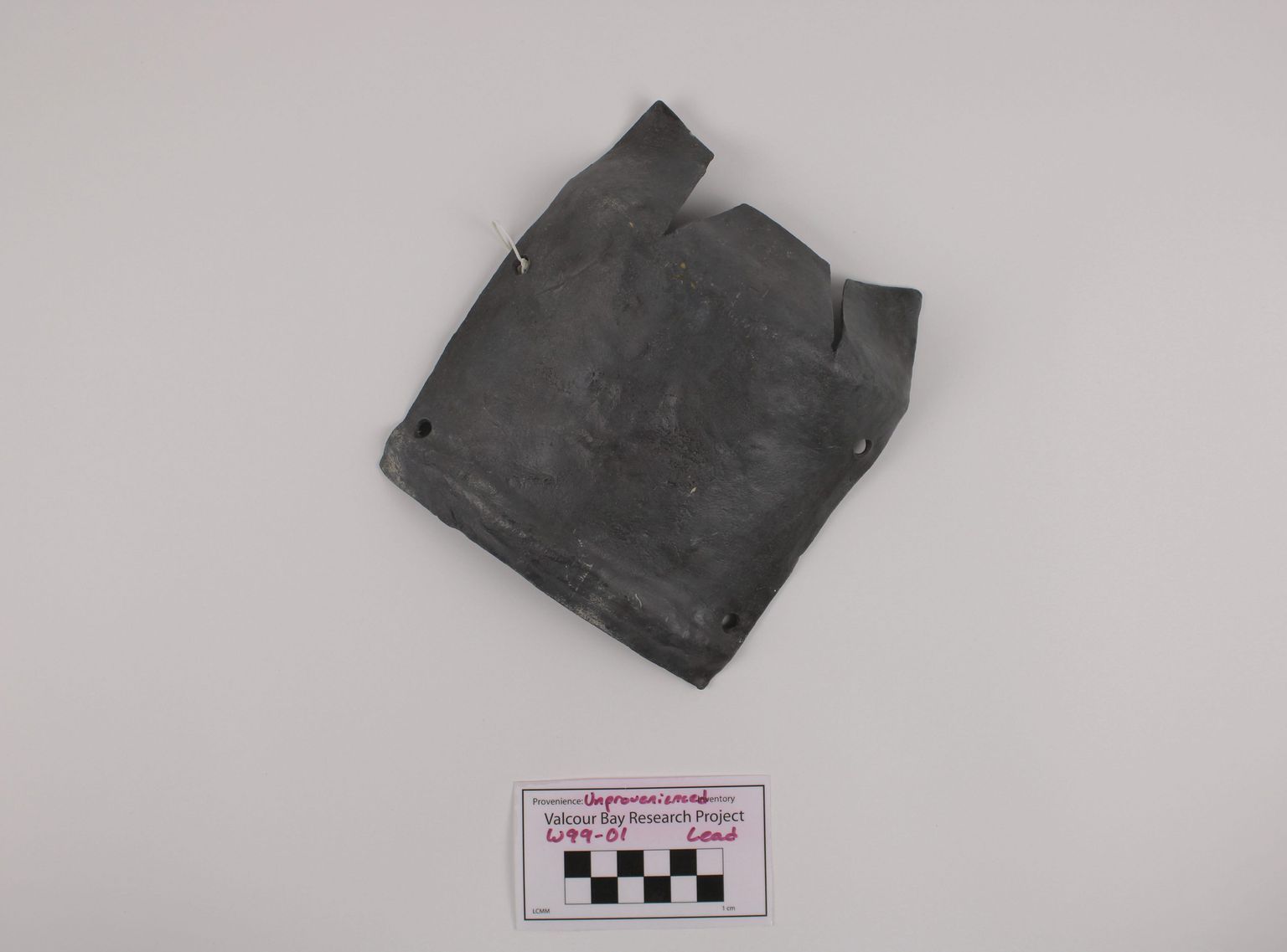 This sheet of lead would have been placed over the touchhole of a cannon when it wasn't in use to keep water and debris out of the gun barrel.