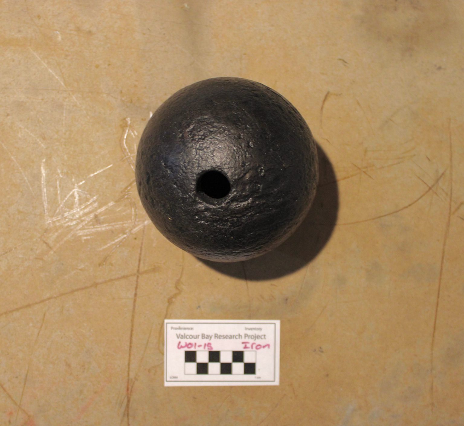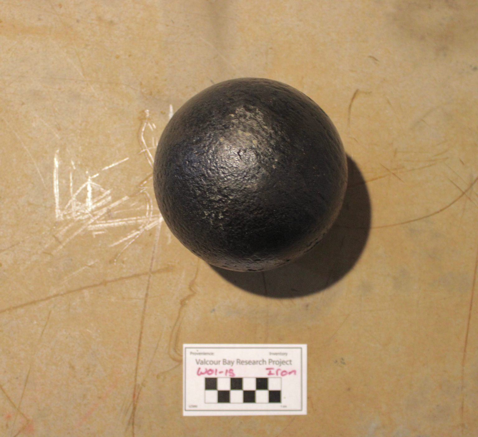 Artifact W01-15 is a 5.5" Howitzer shell. It is associated with W01-15.02, a wooden fuse.