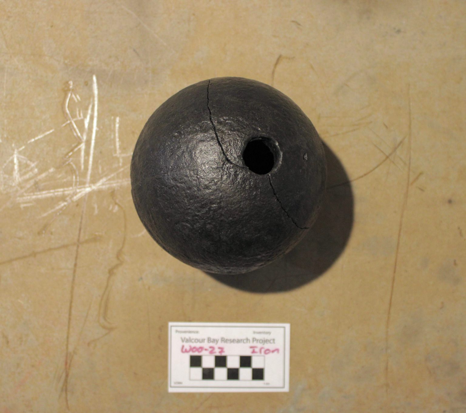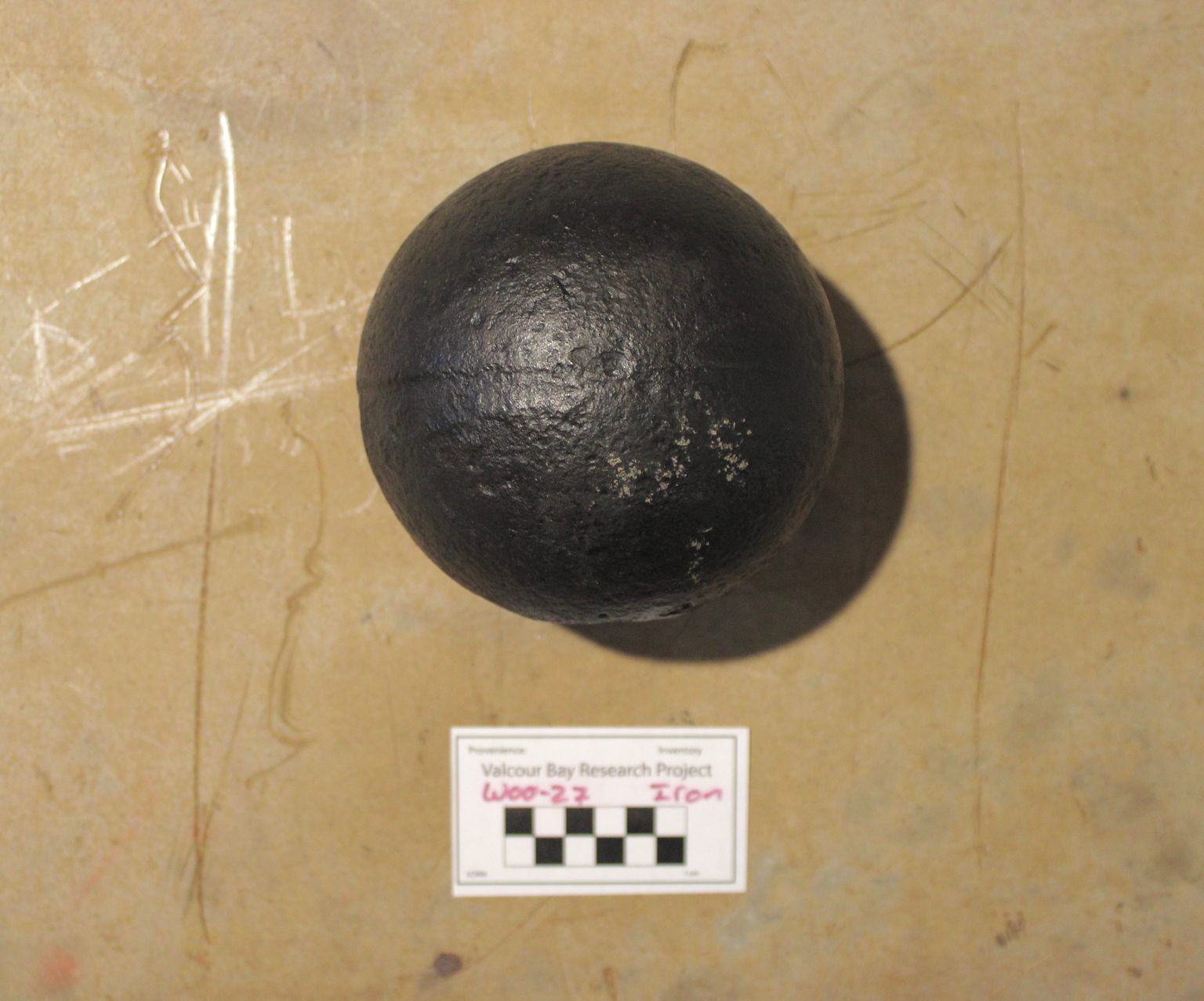 Artifact W00-27 is a cast-iron 5.5" Howitzer shell. This artifact has not been documented in detail. It is associated with fuse piece W00-27.02.