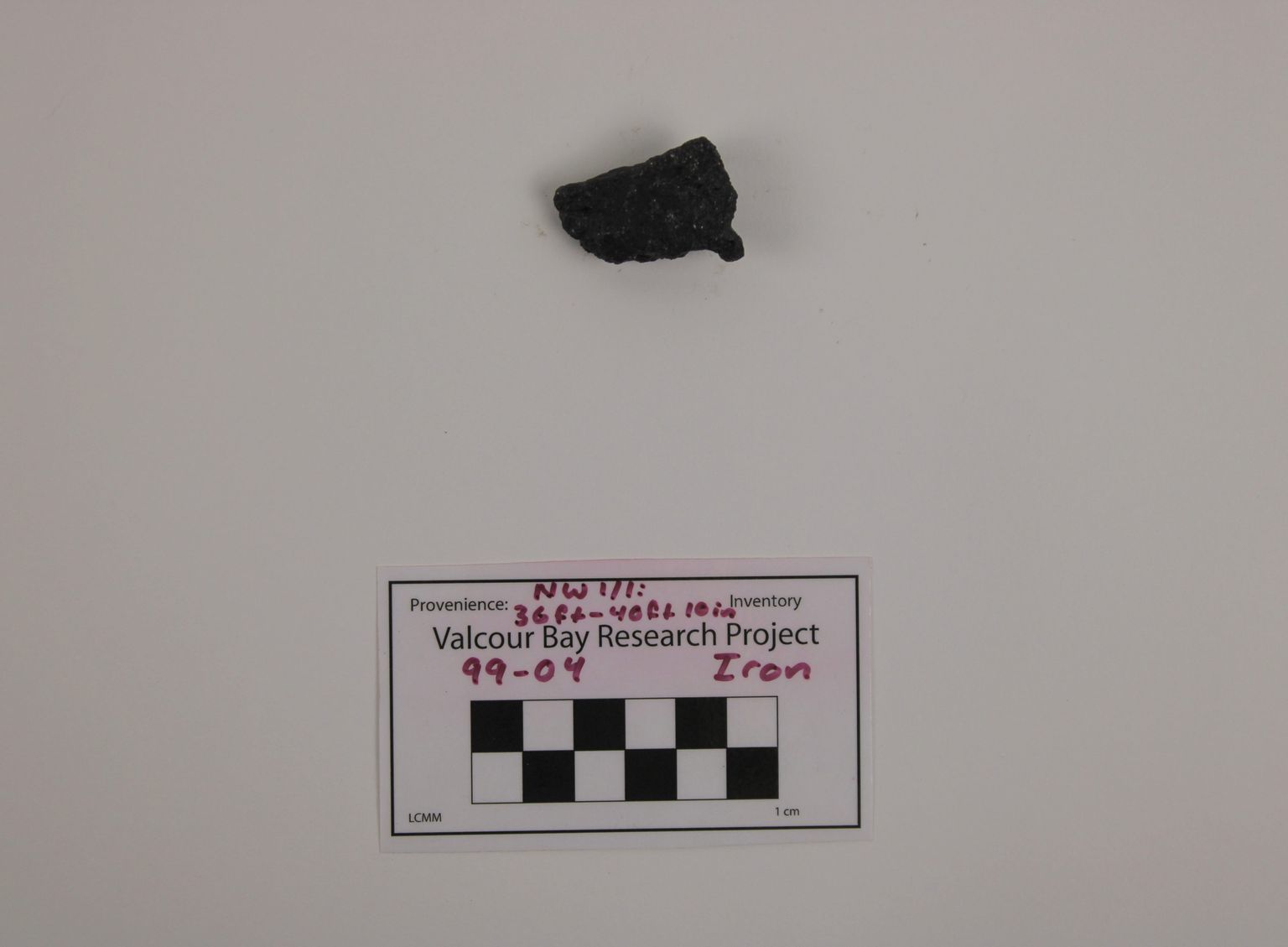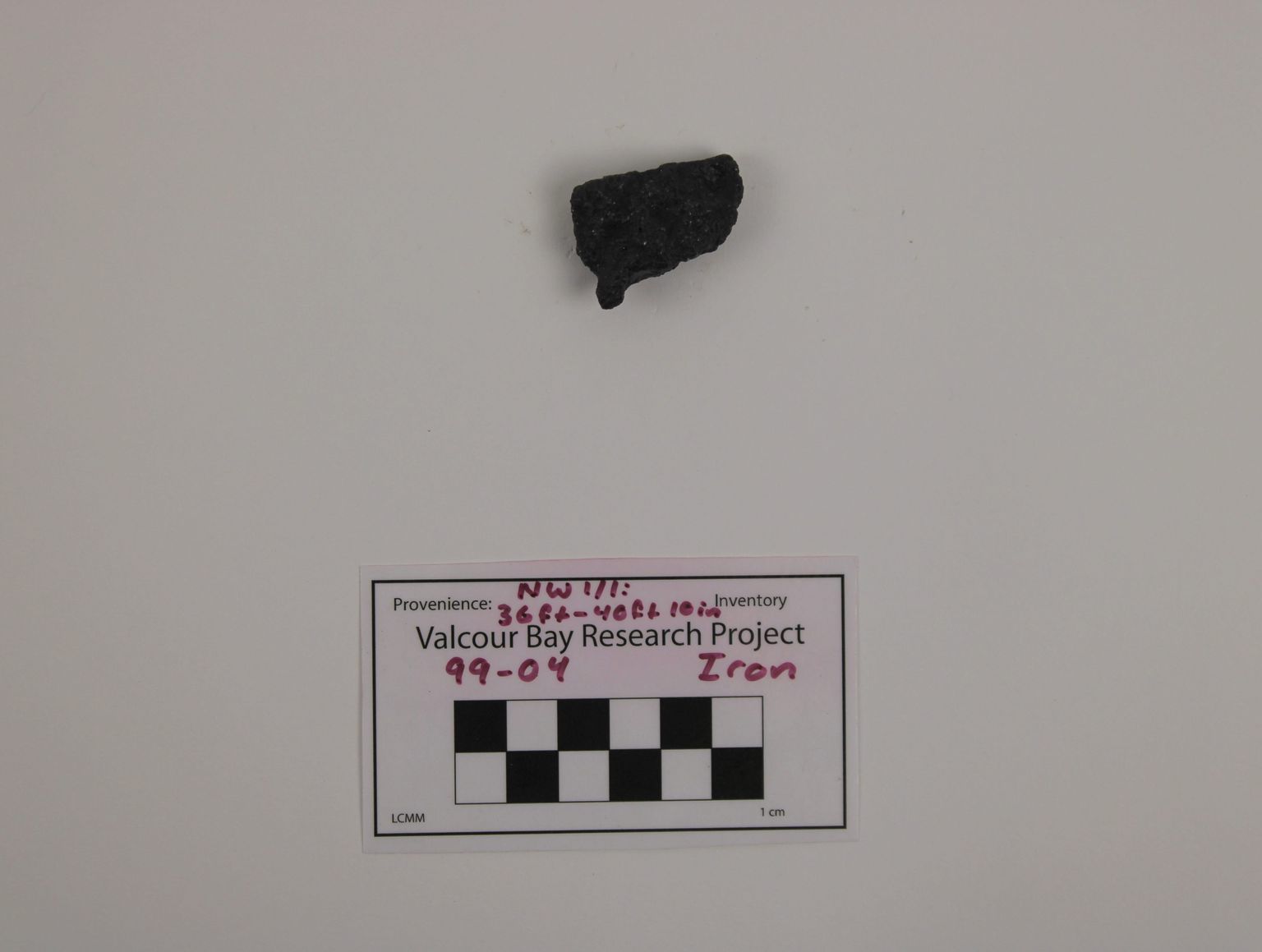 Artifact 99-04 is an amorphous fragment with no worked surface apparent. It is possible that this fragment of the burst cannon or simply a piece of scrap metal.Collection