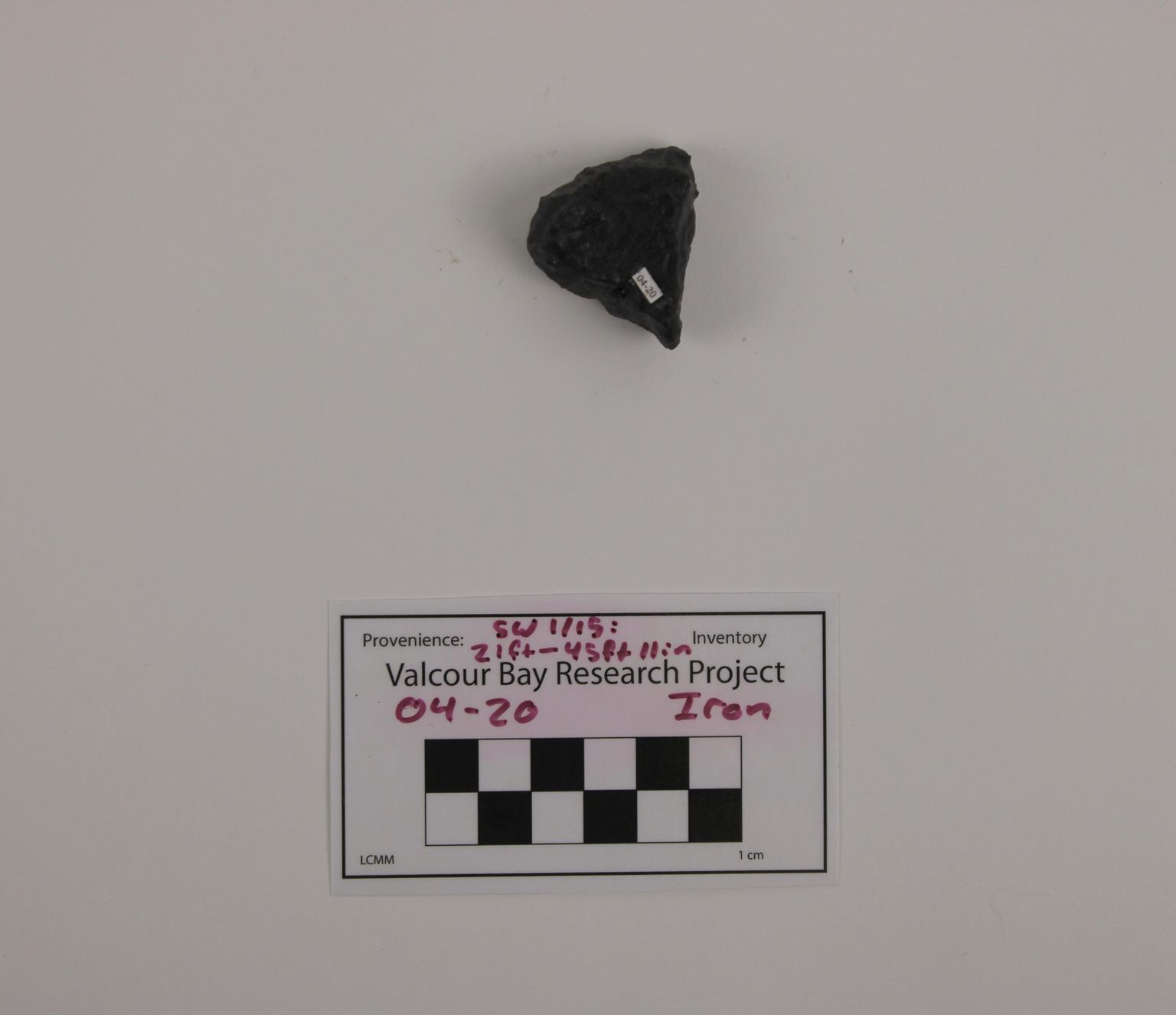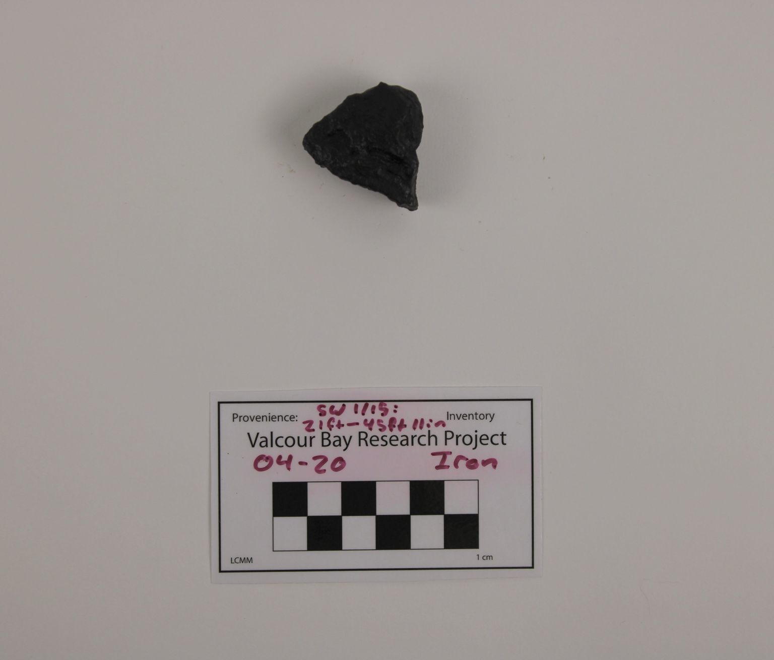 Artifact 04-20 was found on 8/19/2004 at the bottom of Valcour Bay. It is unclear if it was fired from a 5.5 or 8.5 Howitzer. Small and irregular in shape with the interior mostly smooth the exterior has severe pitting.Collection