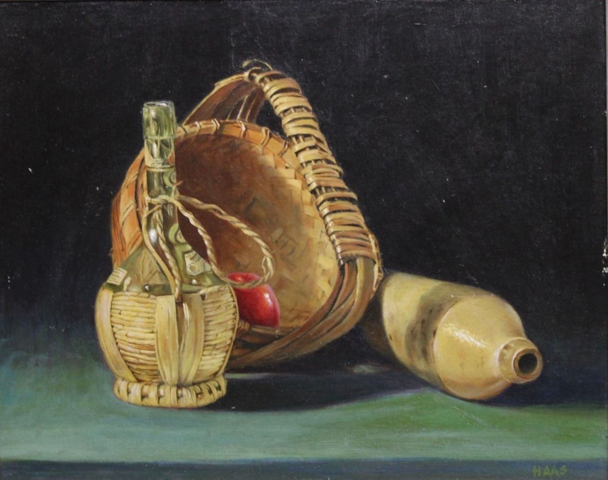 If reproduced, the credit line should read: Still Life with Apple. Ernest Haas, 1965. Acrylic on panel. 16in x 20in. Lake Champlain Maritime Museum Collection.