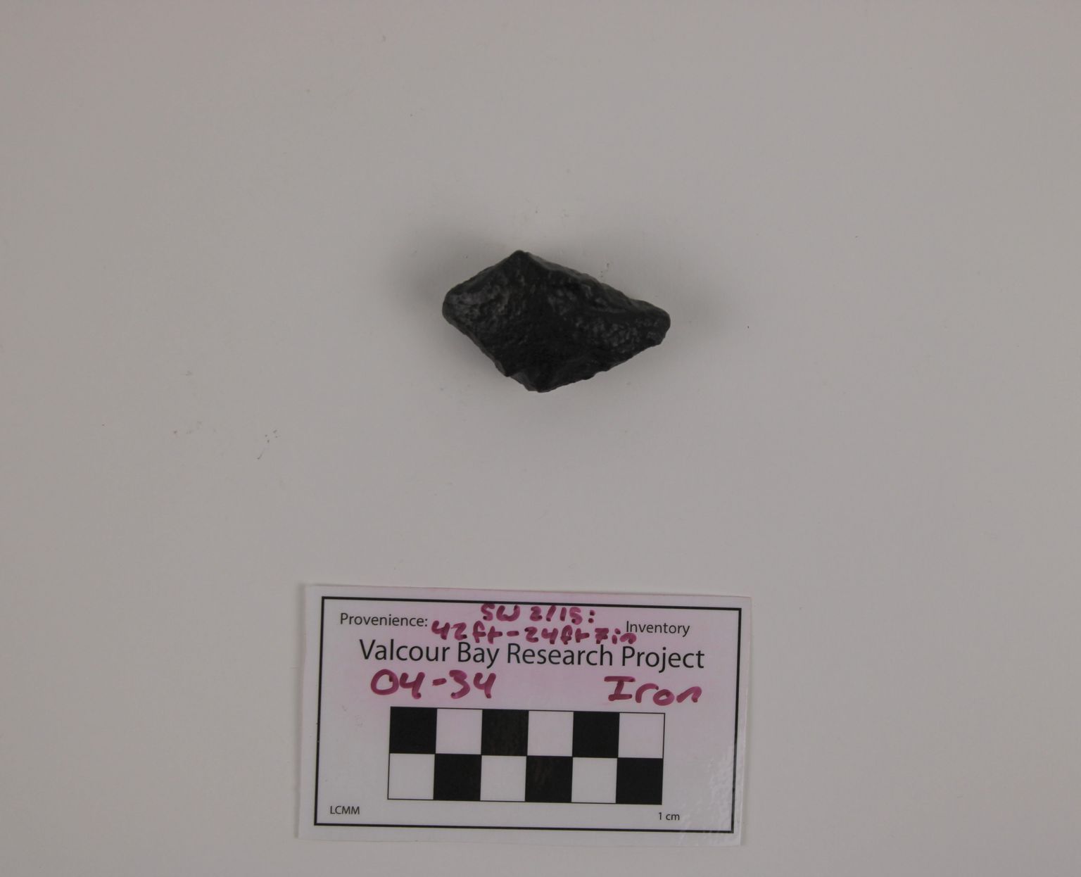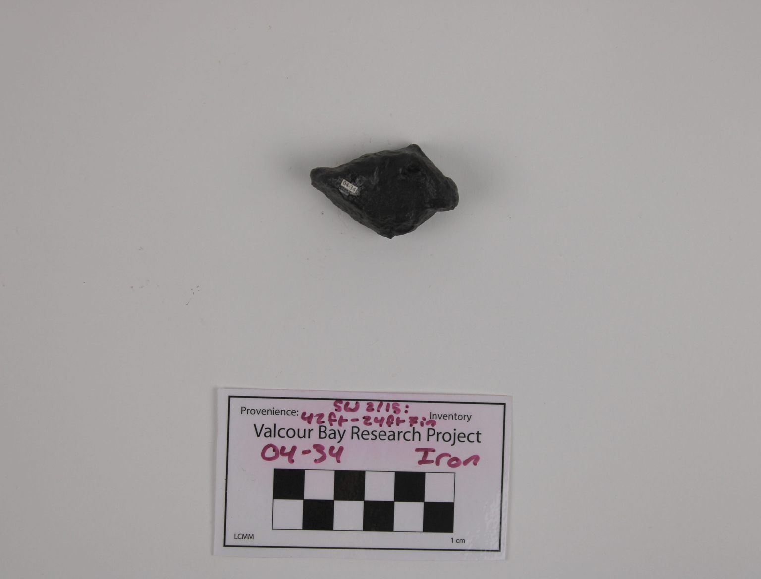Artifact 04-34 is a fragment of a cast-iron bomb shell. It has not been documented in detail.