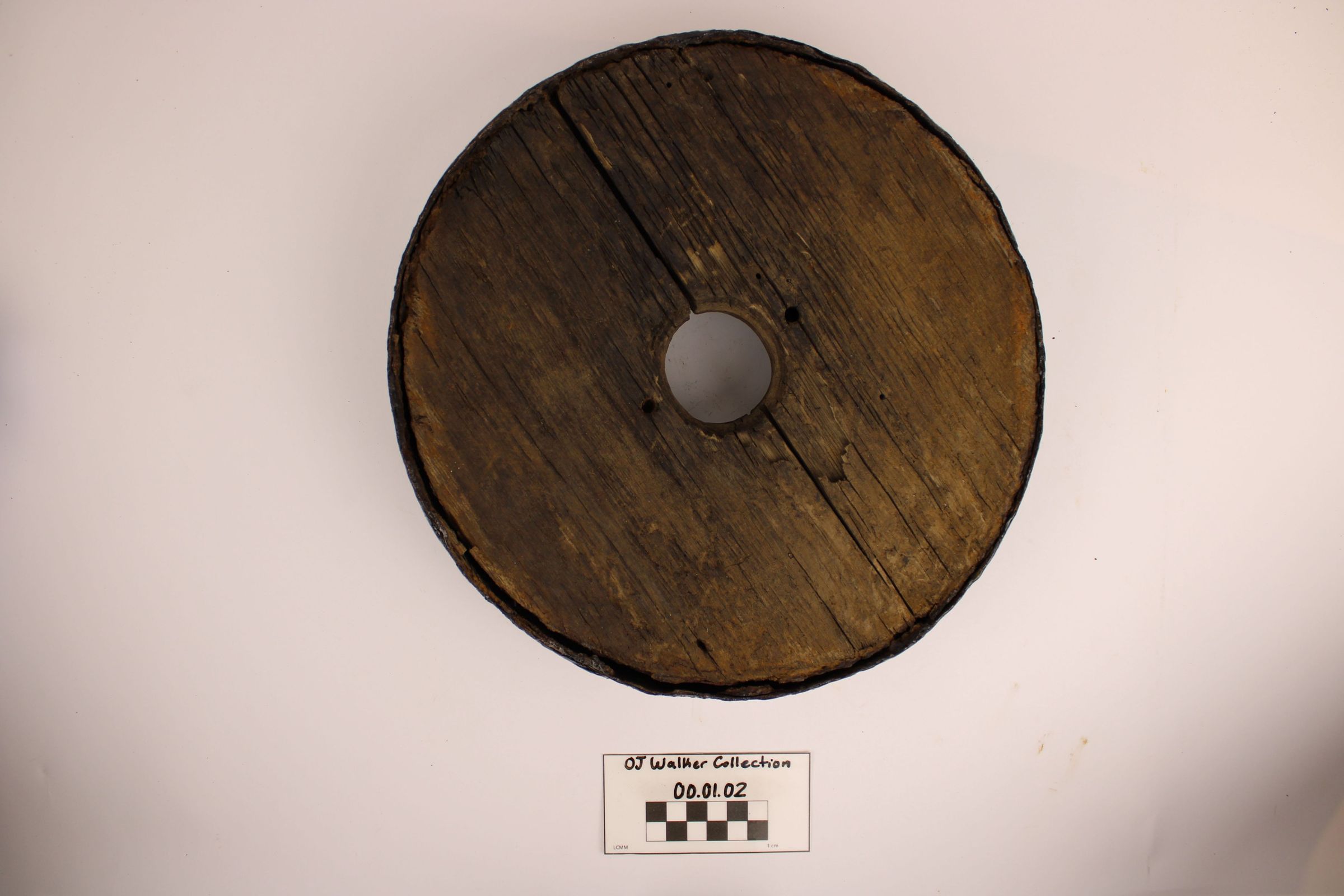 Artifact 00.01.02 is a large wooden sheave. It is likely not extant.