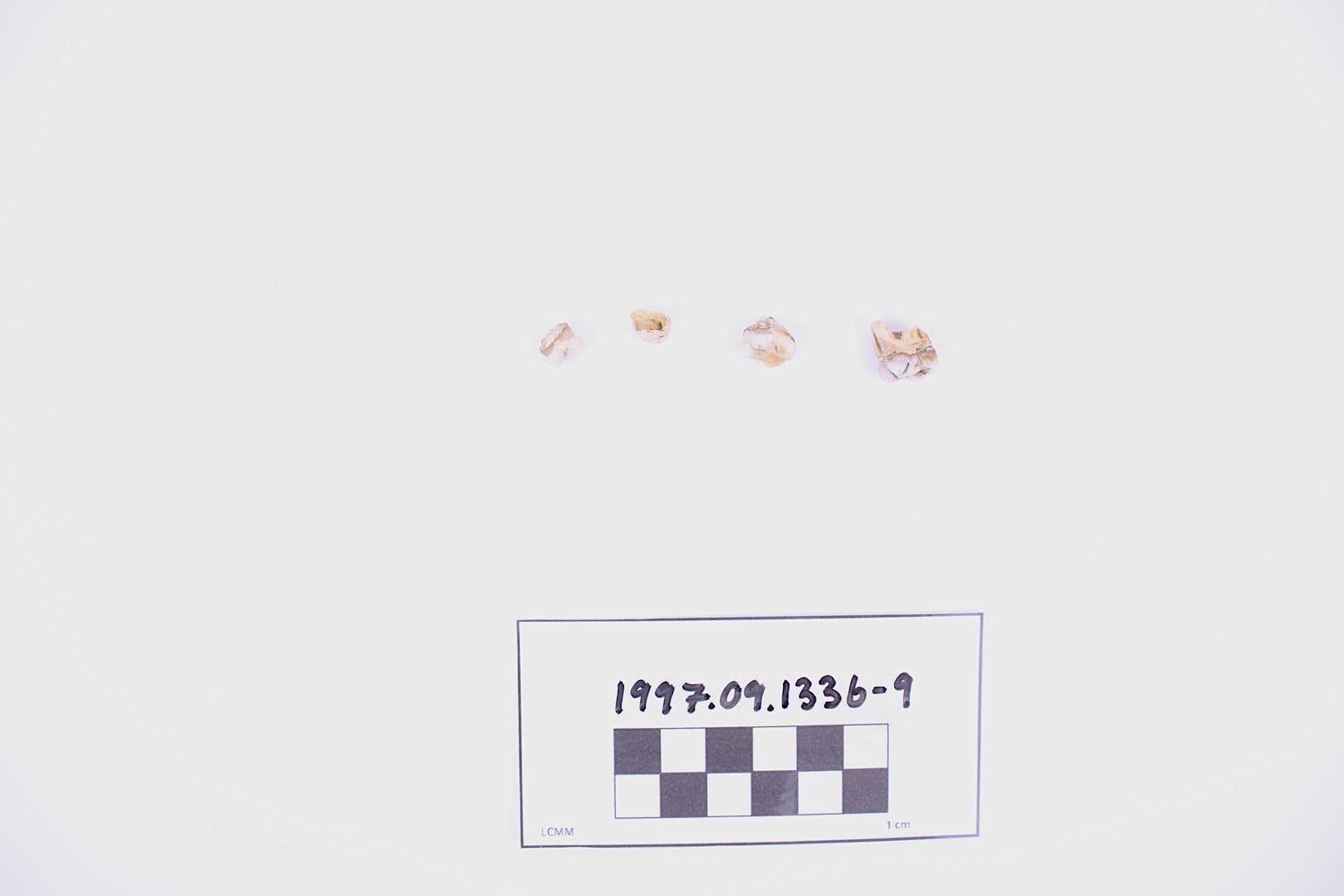 Artifacts 1997.9.1336-1339 are a lot of four (4) fragments of animal teeth.Collection