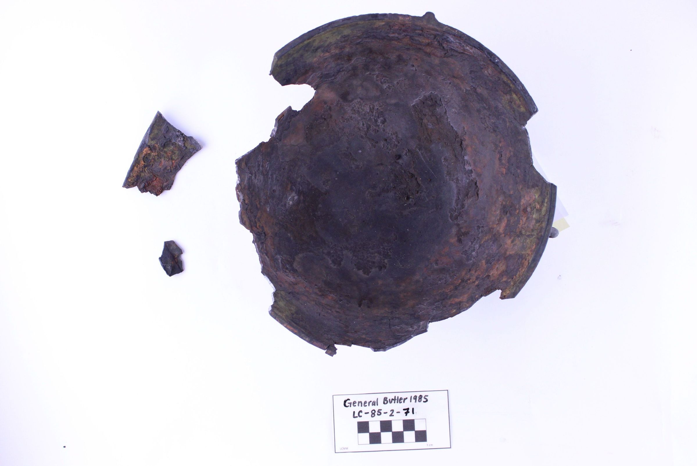Artifact LC-85-2-71 is a lot of three (3) fragments of a cast iron pot. There are two small handles along the upper rim of the pot to assist in carrying. The material has rusted and worn due to age.Use