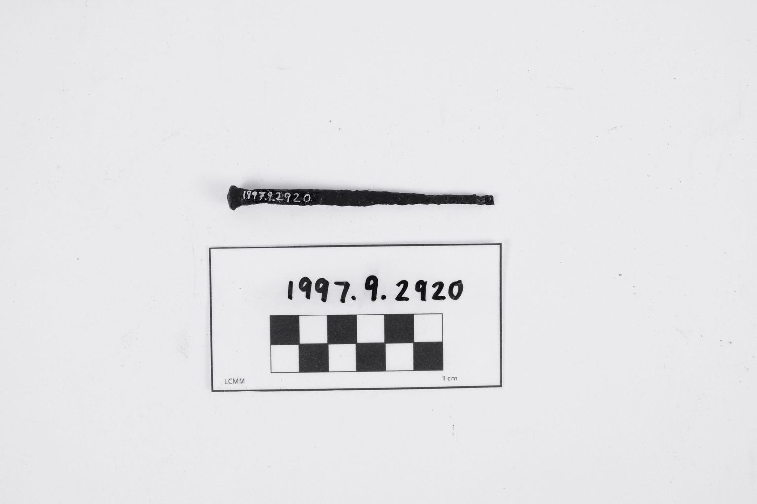 Artifact 1997.9.2920 is an iron nail.