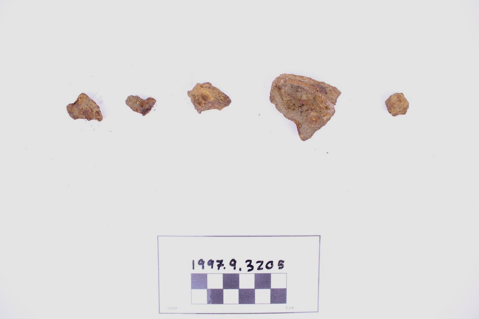 Artifact 1997.9.3205 is a lot of five (5) iron-rich, solid mud pieces.Collection