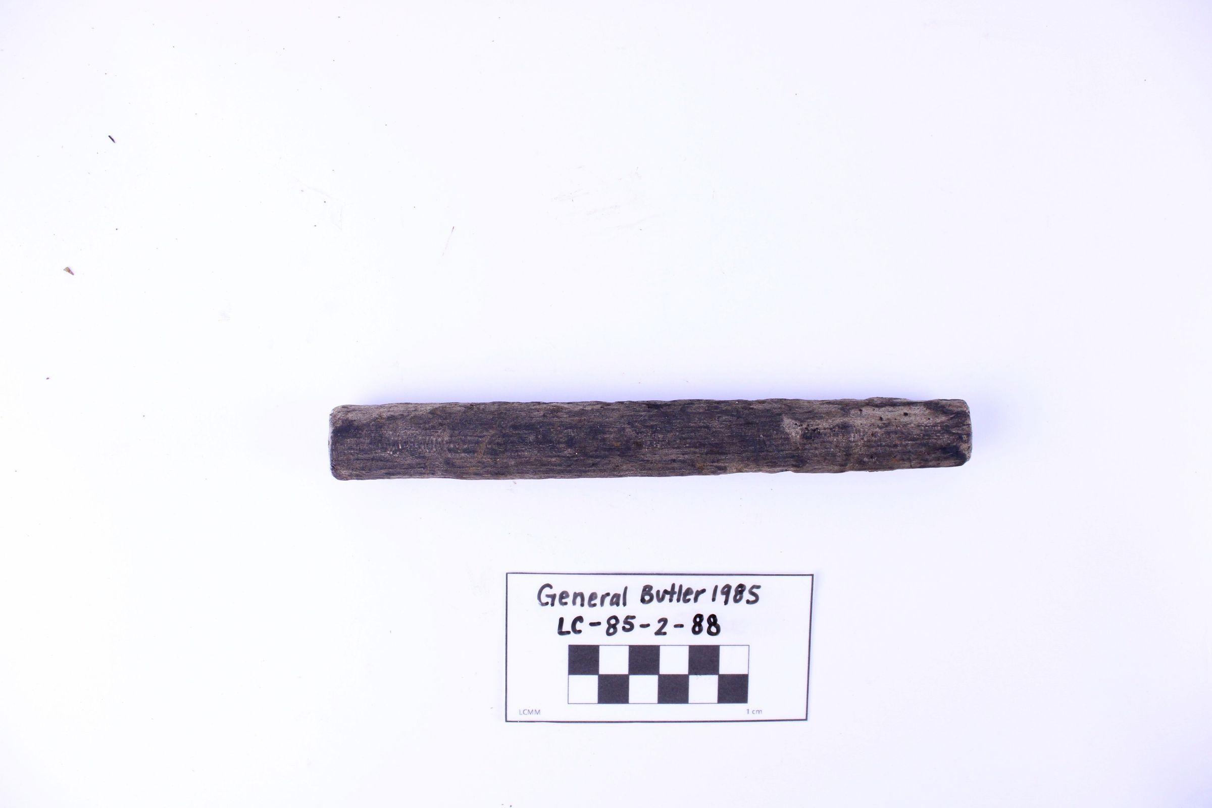 Artifact LC-85-2-88 is one (1) wooden object. The surface of the wood is scratched particularly on the ends.