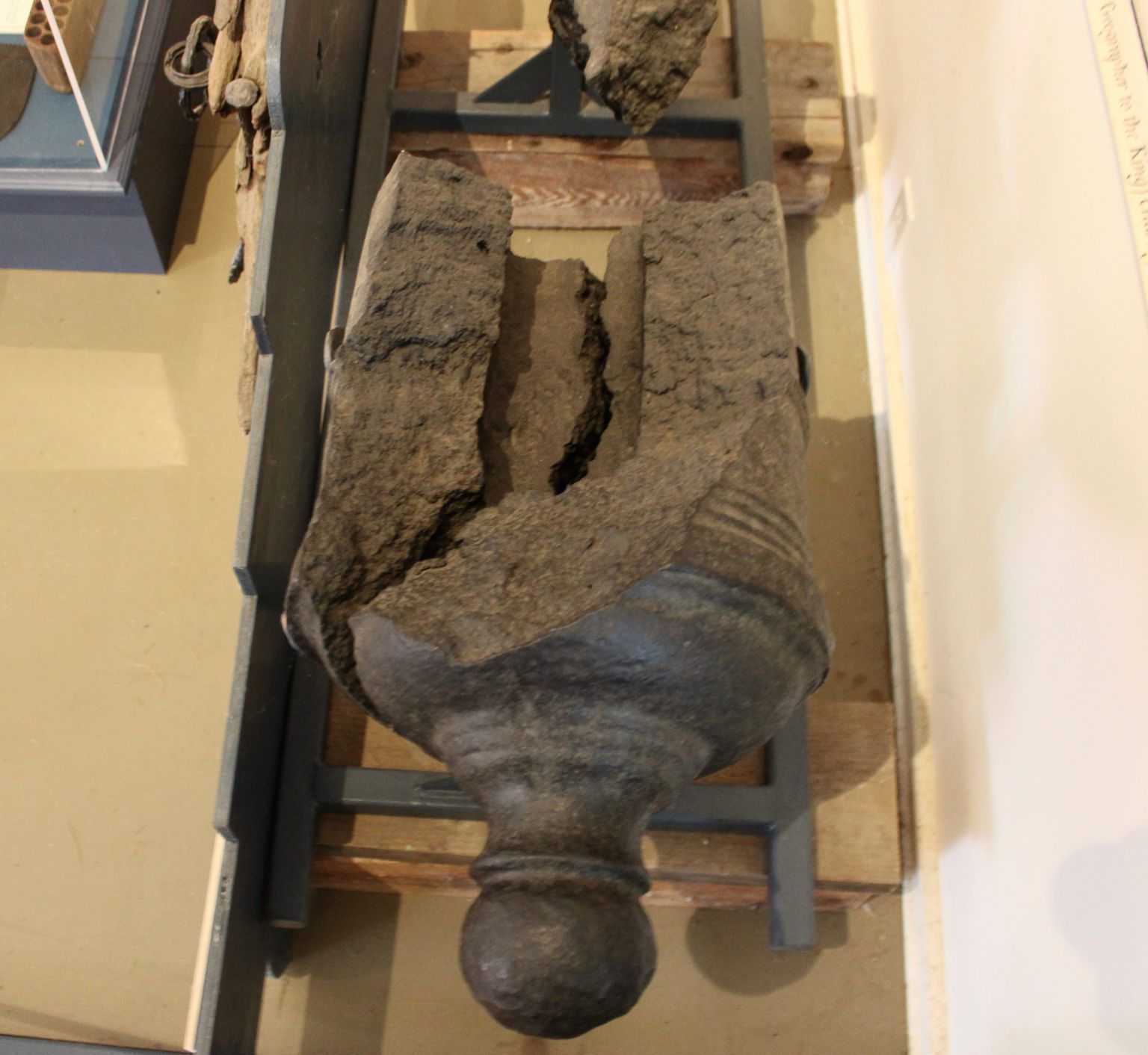 Artifact 00-04 is a wedge shaped portion of the breech from the exploded cannon. This fragment is from the lower right section of exploded cannon barrel.