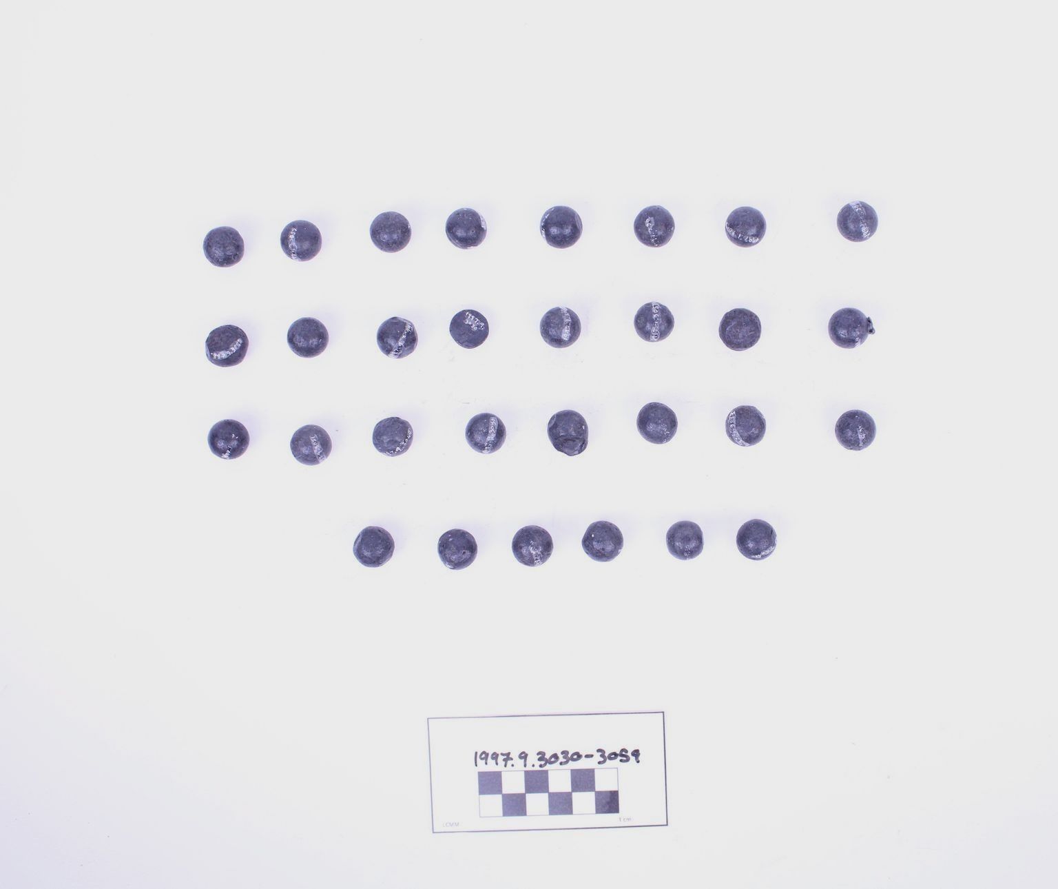Artifacts 1997.9.3030-3059 are a lot of thirty (30) lead shot.