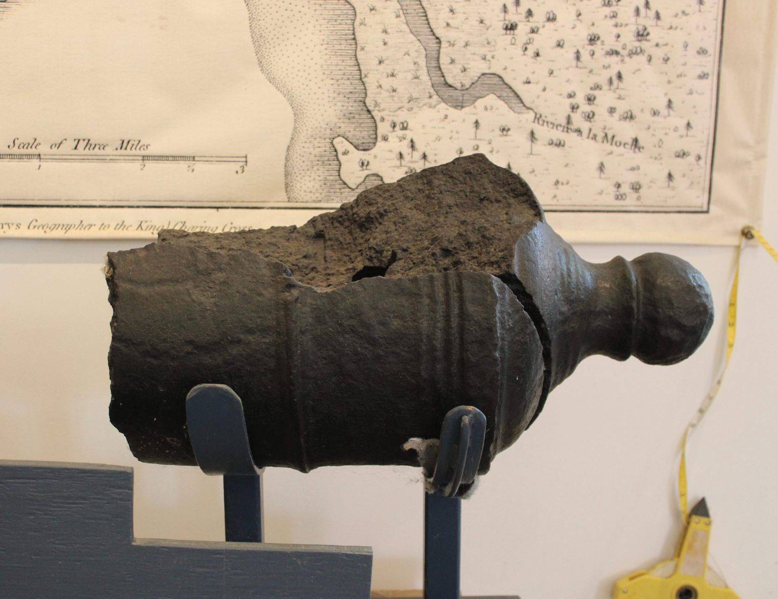Artifact 00-05 is the left side of first reinforce and portion of breech of the exploded cannon.