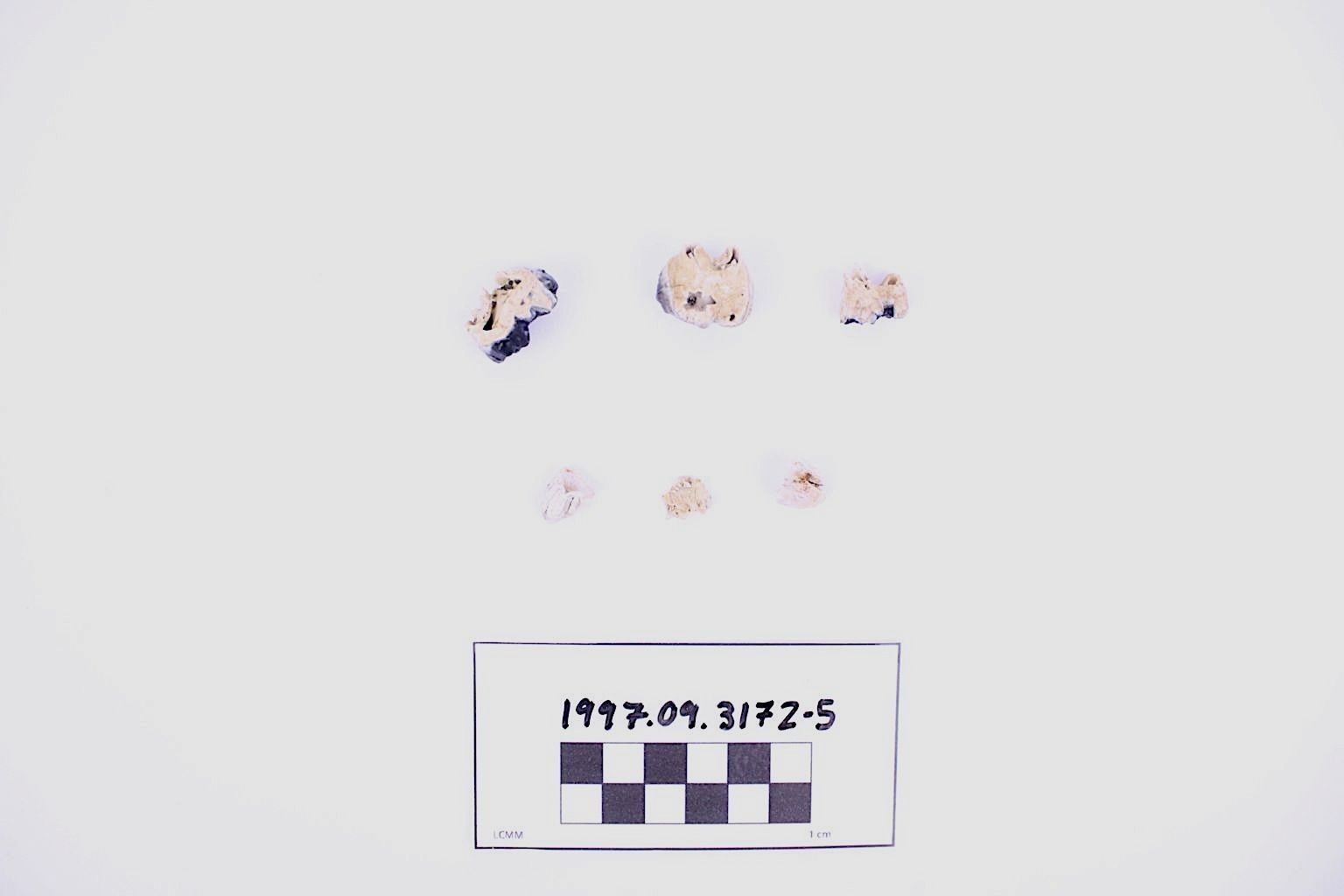 Artifacts 1997.9.3172-3175 is a lot of six (6) fragments of animal teeth.Collection