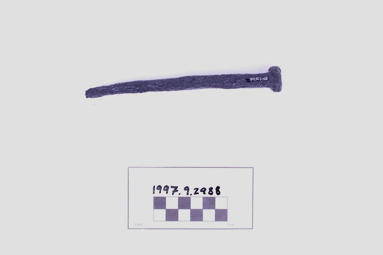 Artifact 1997.9.2988 is a fragment of an iron spike.