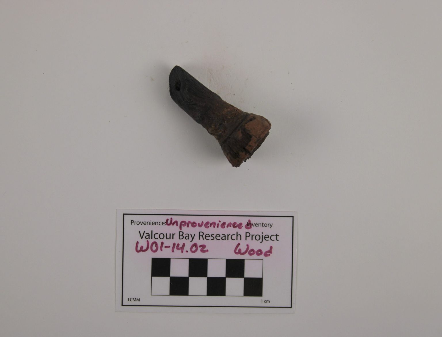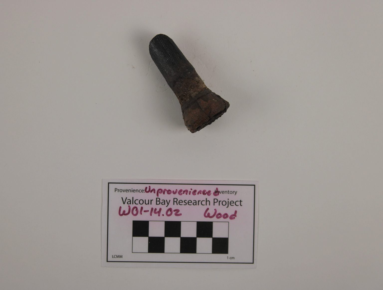 Artifact W01-14.02 is a wooden fuse associated with the 5.5" Howitzer shell W01-14.