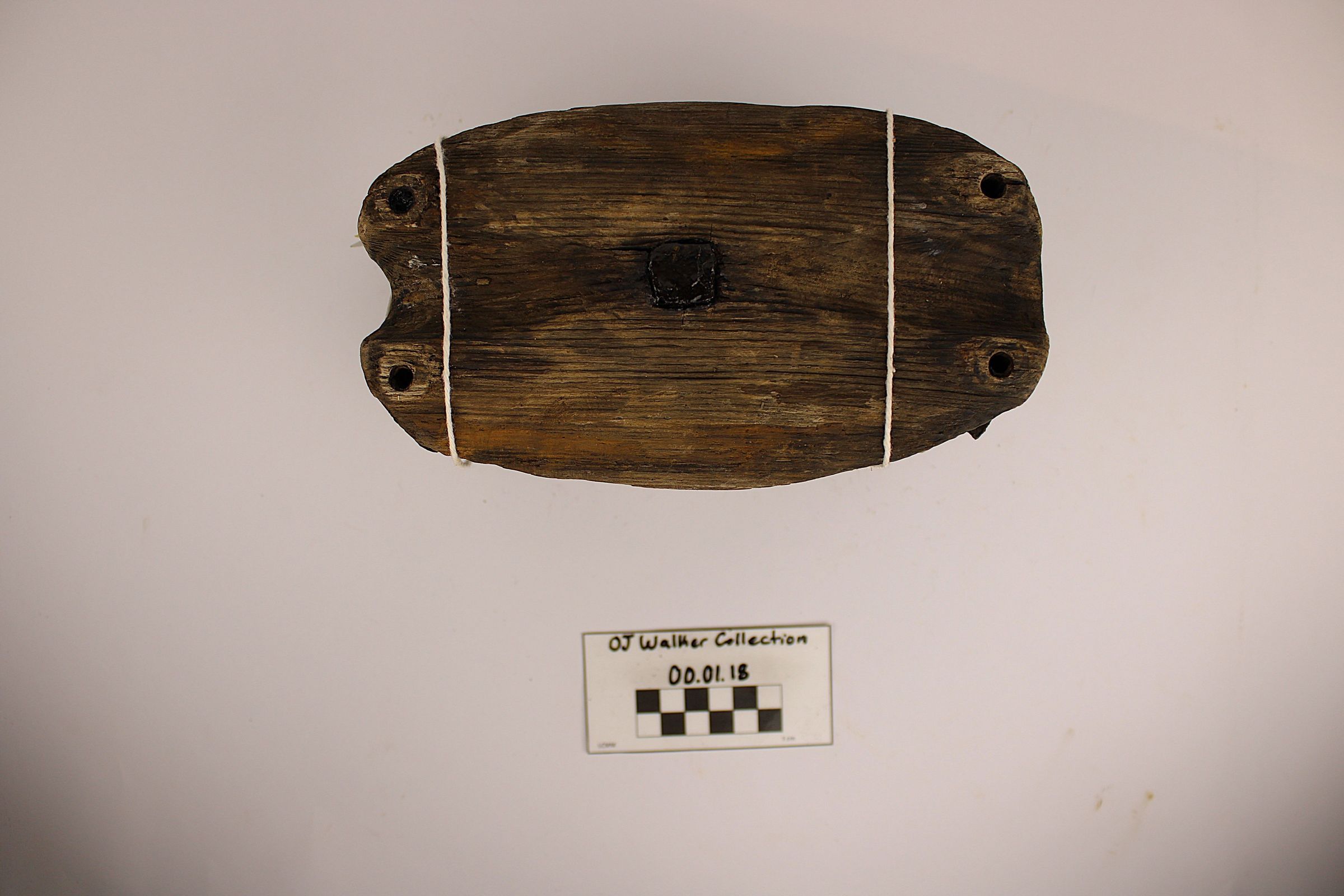 Artifact 00.01.18 is a double wooden sheave.