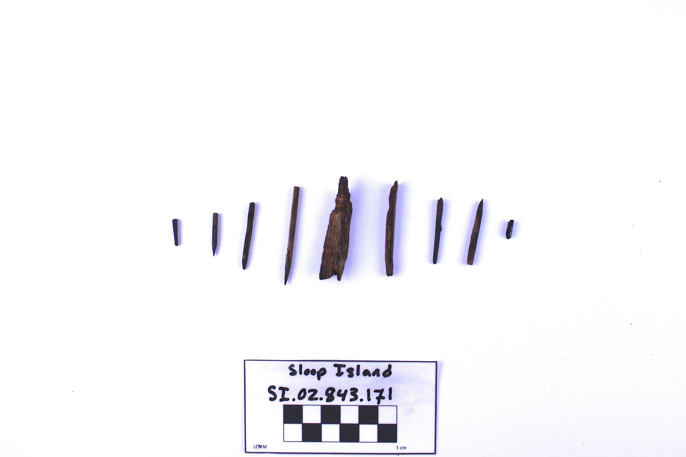 Object SI.02.843.171 is a lot of eight (8) wooden canning pegs.