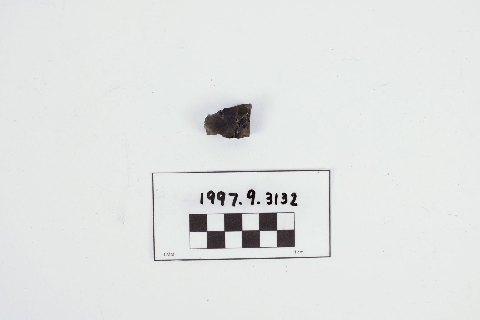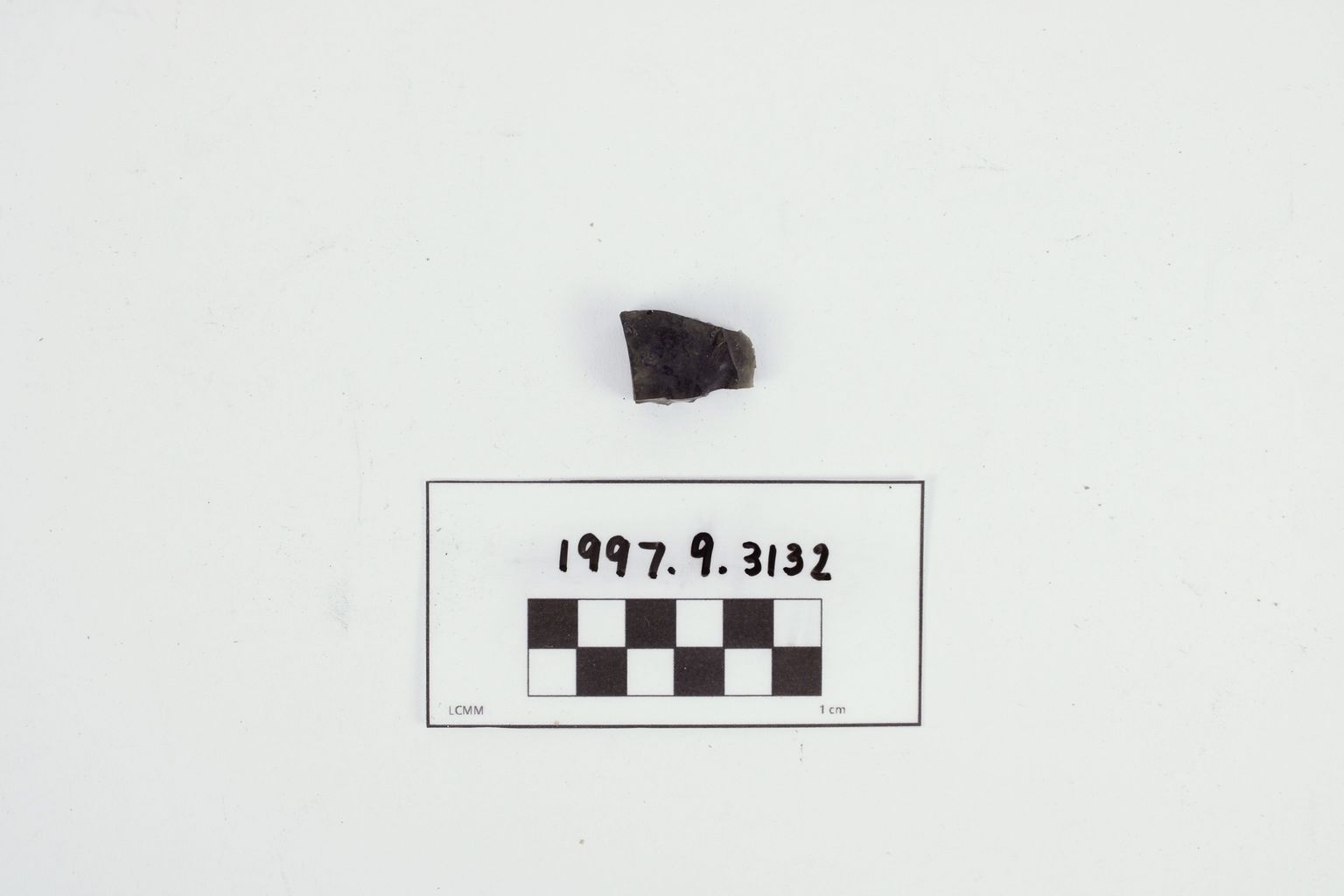 Artifact 1997.9.3132 is a fragment of dark green bottle glass. This artifact is associated with artifact 1997.9.3133.Collection