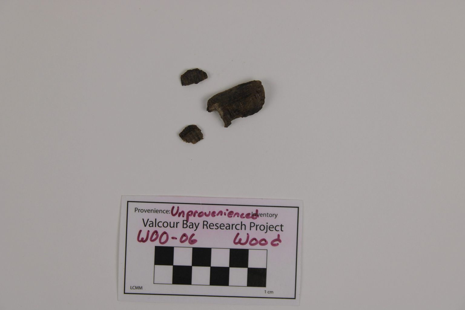 Artifact W00-06.02 are a series of wooden fuse fragments. These are associated with Mortar shell W00-06.