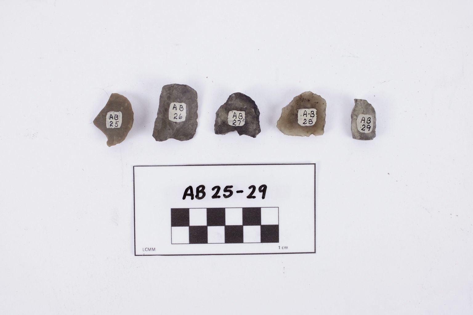 Artifacts 1997.9.4086-4090 are a lot of five (5) gun flints.Collection