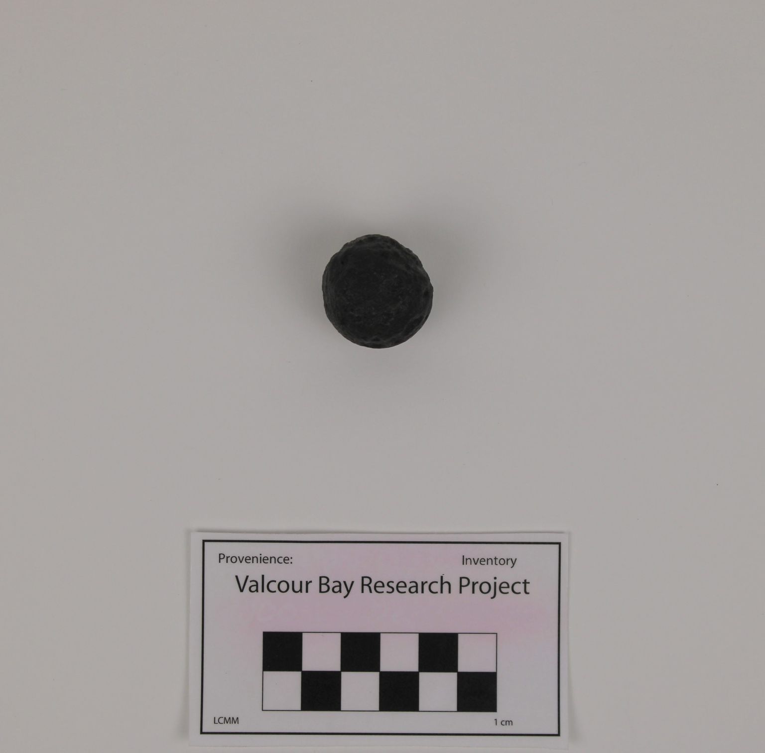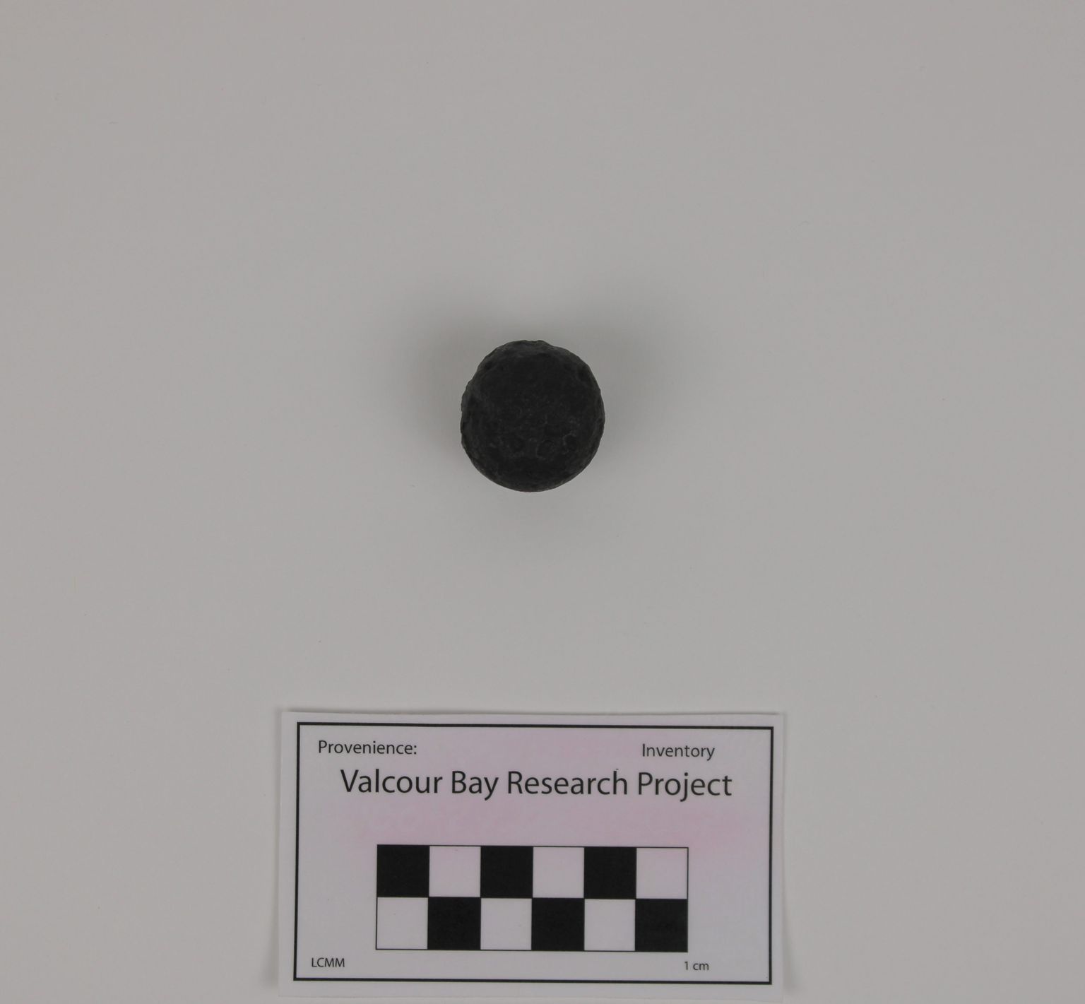 This piece of canister (cluster) shot is 1in (2.5cm) in diameter and weighs 1.5 oz (42 g). These measurements suggest that this round was fired from a swivel gun.