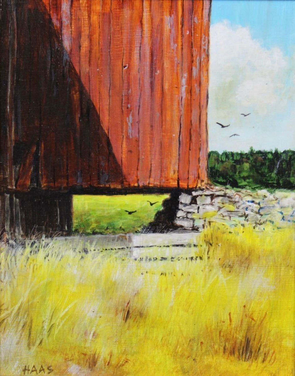 If reproduced, the credit line should read: Red Barn. Ernest Haas, 2011. Acrylic on panel. 16in x 13in. Lake Champlain Maritime Museum Collection.