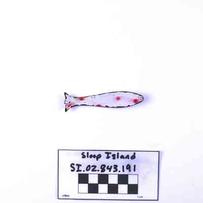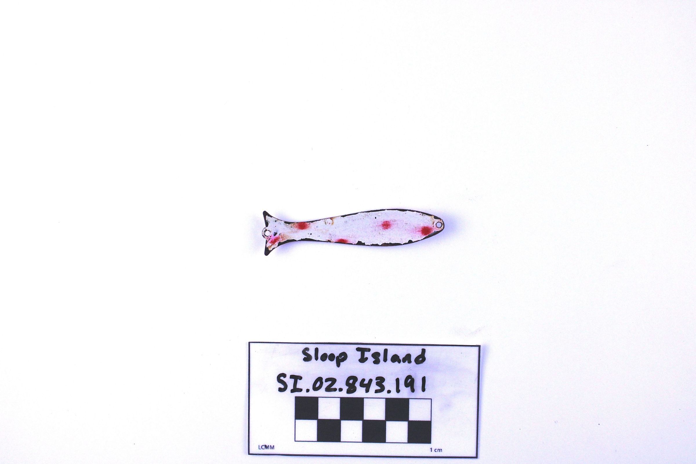 Object SI.02.843.191 is a fishing lure. It has been painted white with red spots.