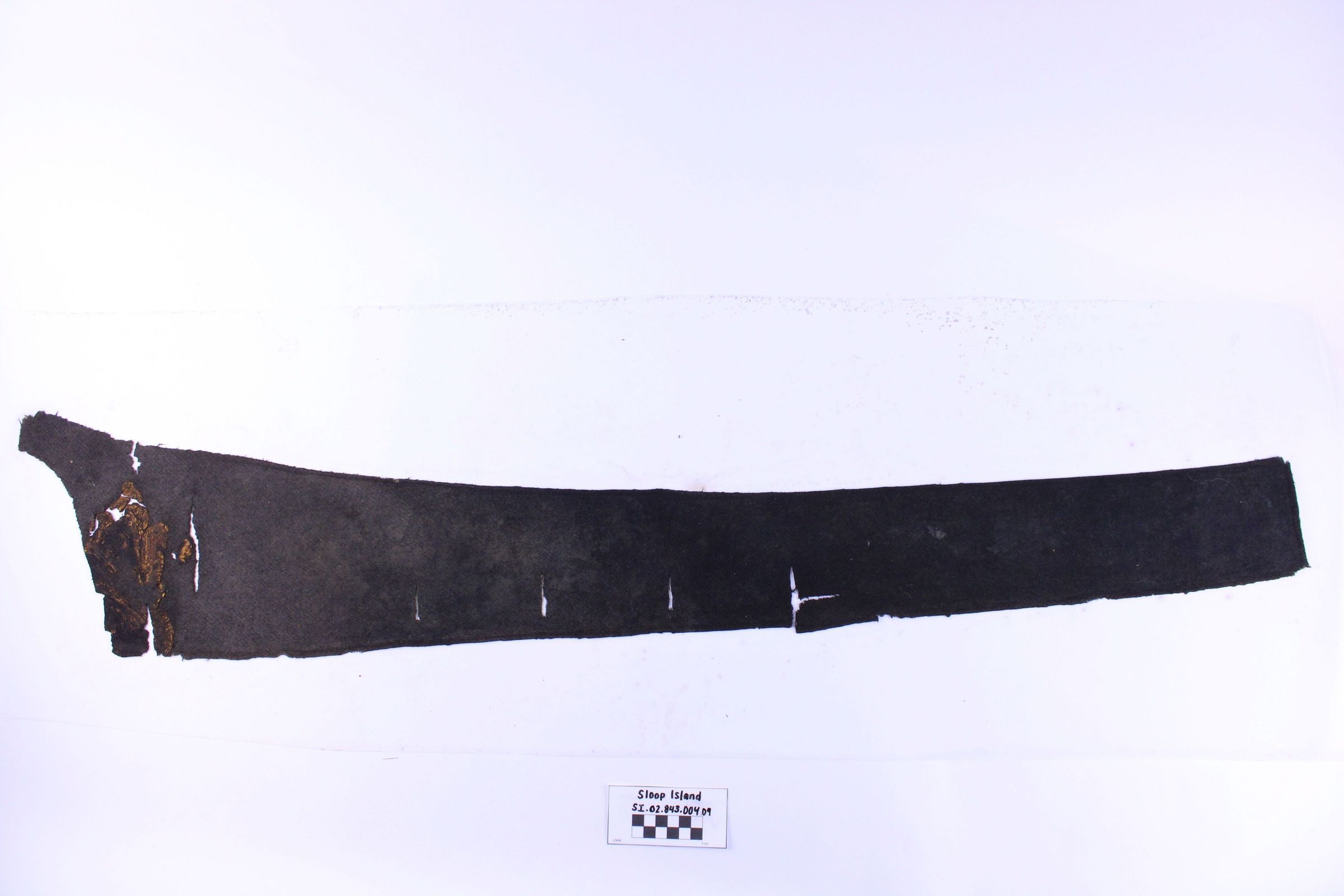 Object SI.02843.004.009 is a fragment of the left interfacing of a wool coat. The wool is black, though half has faded to a lighter brown.Use