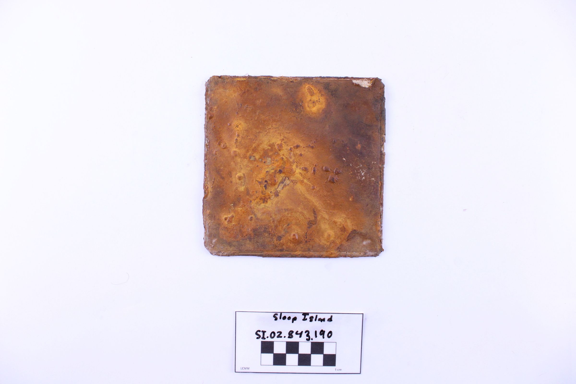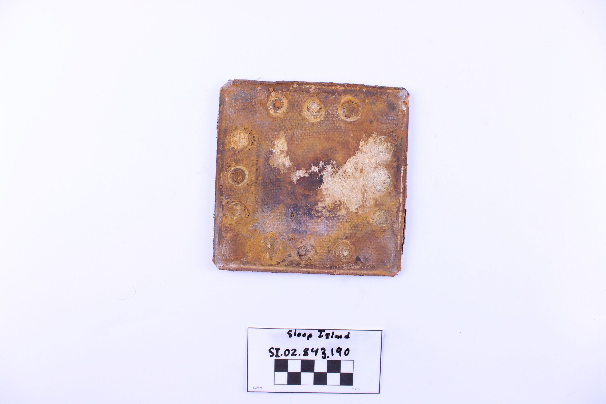 Oxidation is visible on this artifact. Should be a candidate for re-conservation.