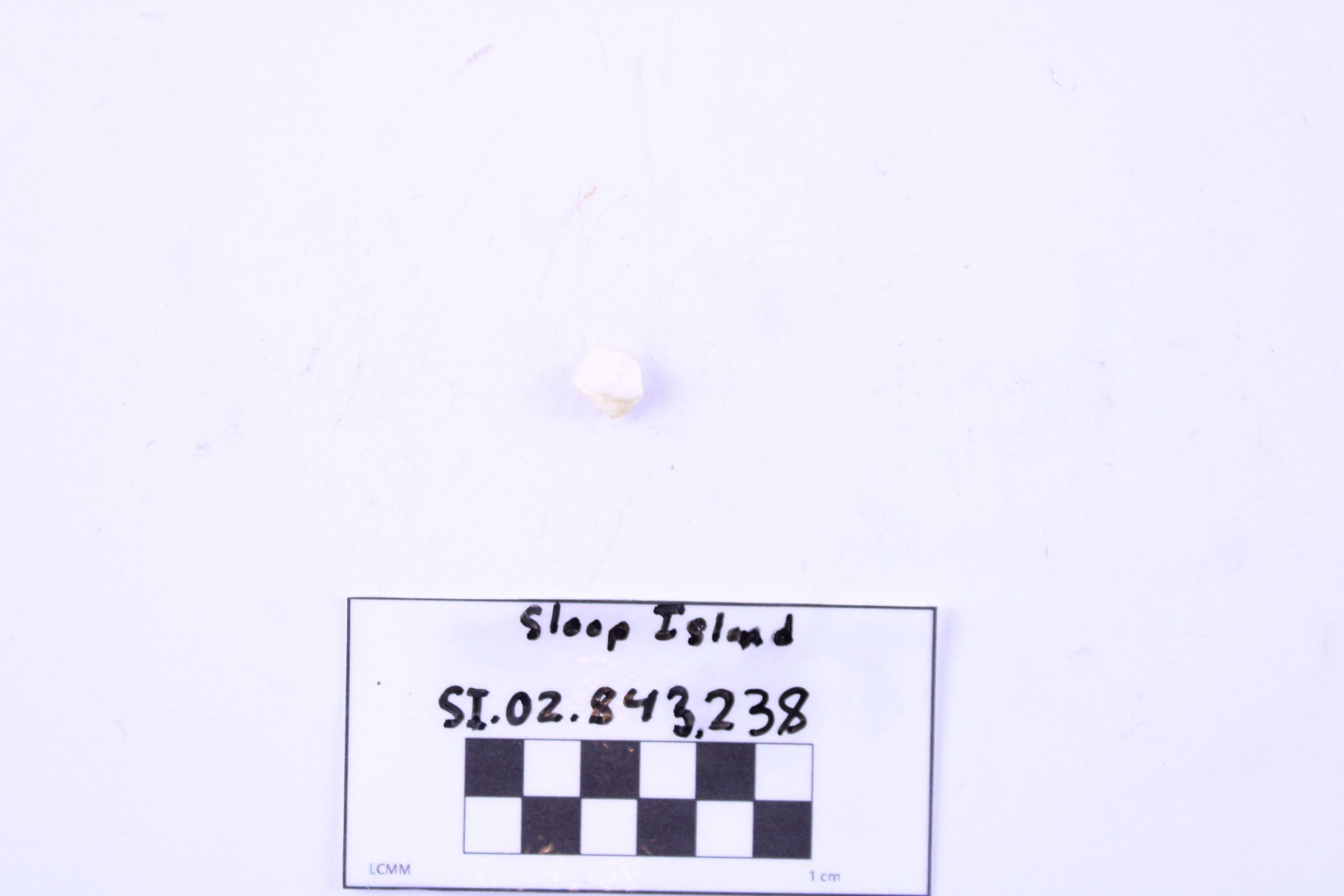 Object SI.02.843.238 is a fragment of a white quartz. It is a flat semi-circle with one edge thinner and sharper than the others.Use