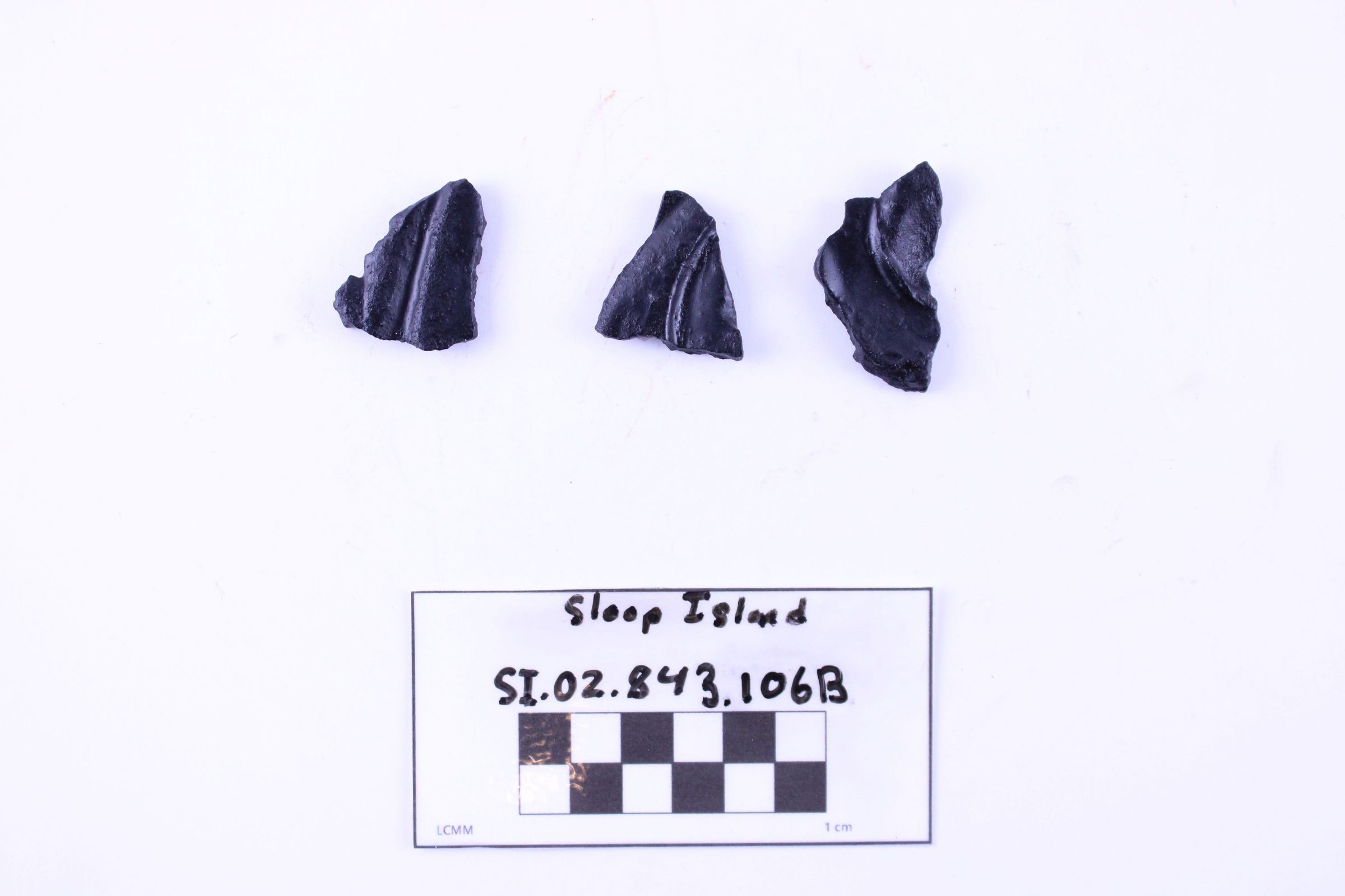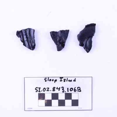 Object SI.02.843.106B are fragments that were separated from SI.02.843.106A during the conservation progress. These fragments are from a stove skirt.