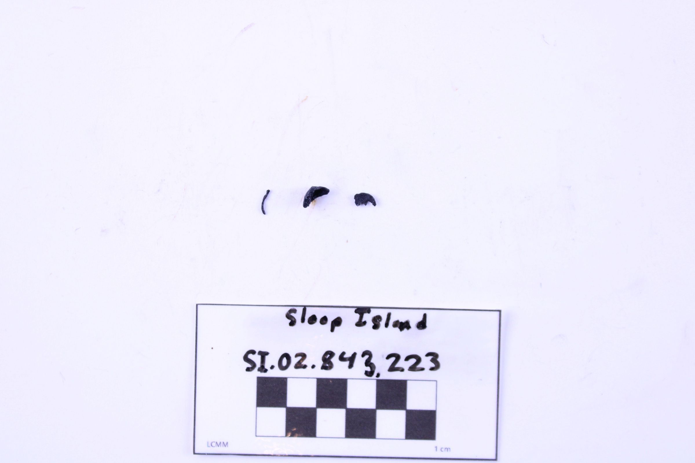 Object SI.02.843.223 is a lot of three (3) fragments of an iron tack. The fragments all have a curved surface. Two (2) fragments make up the head of the tack, with the third being the needle.Collection