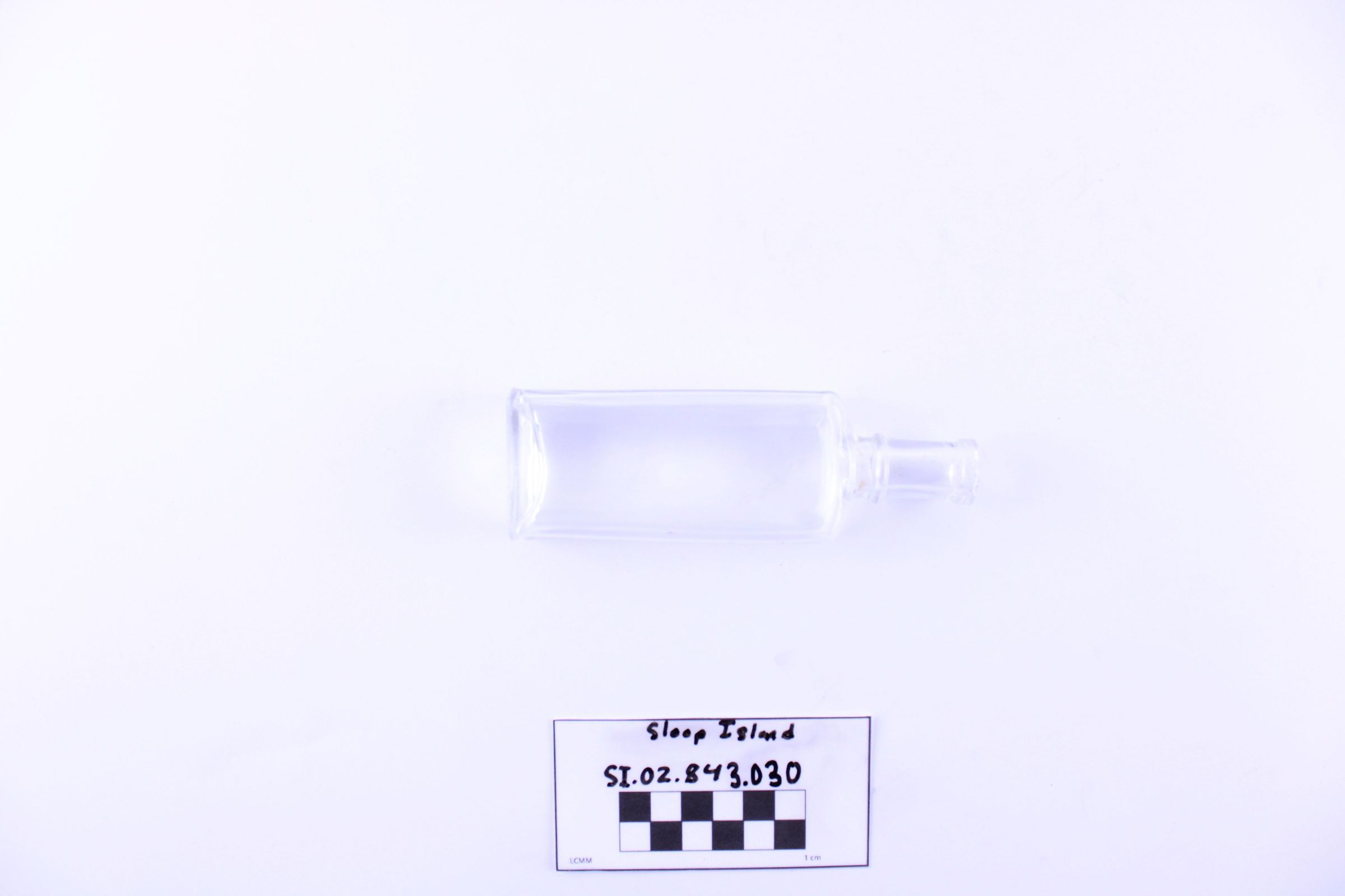 Object SI.02.843.030 is a glass medicine bottle.
