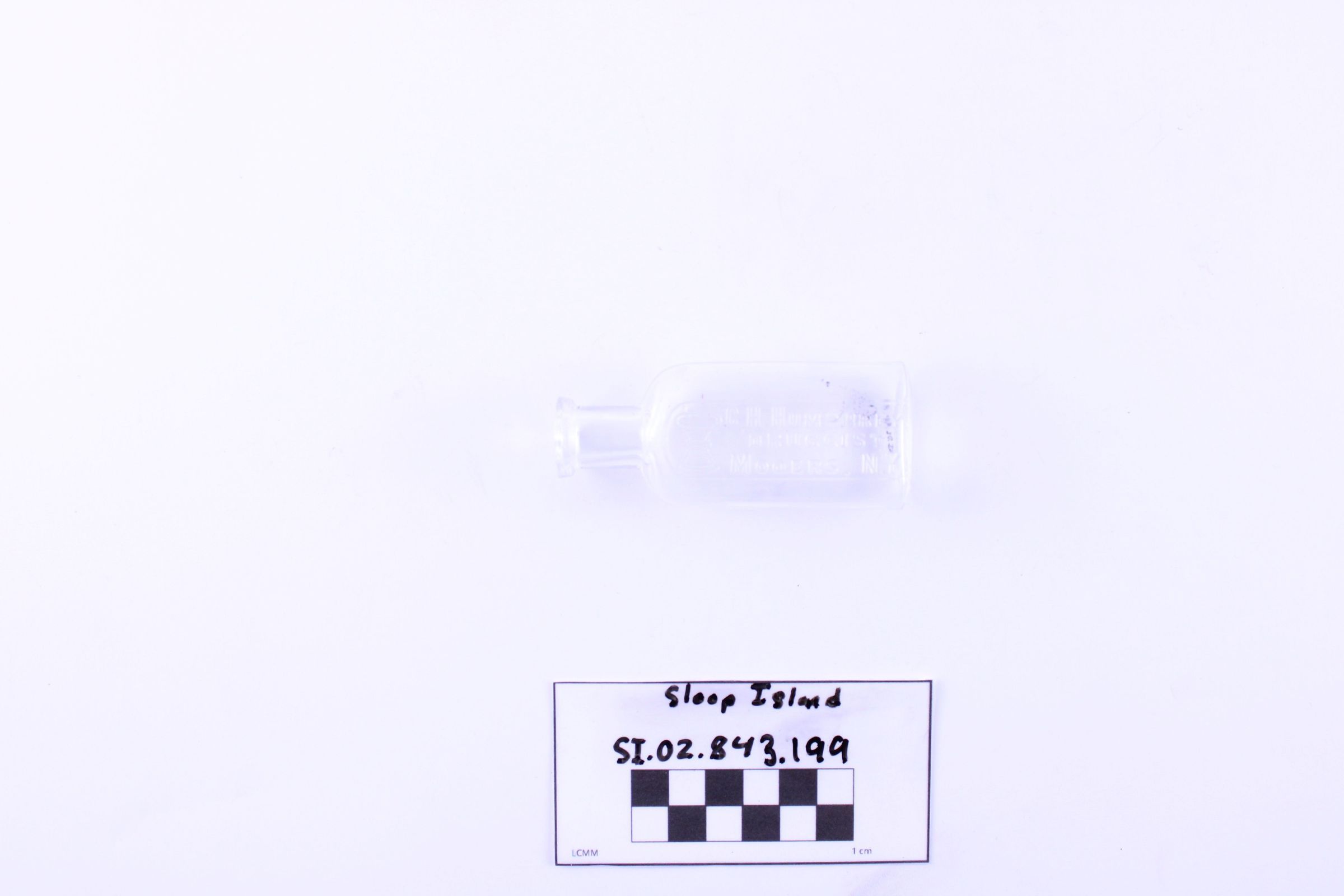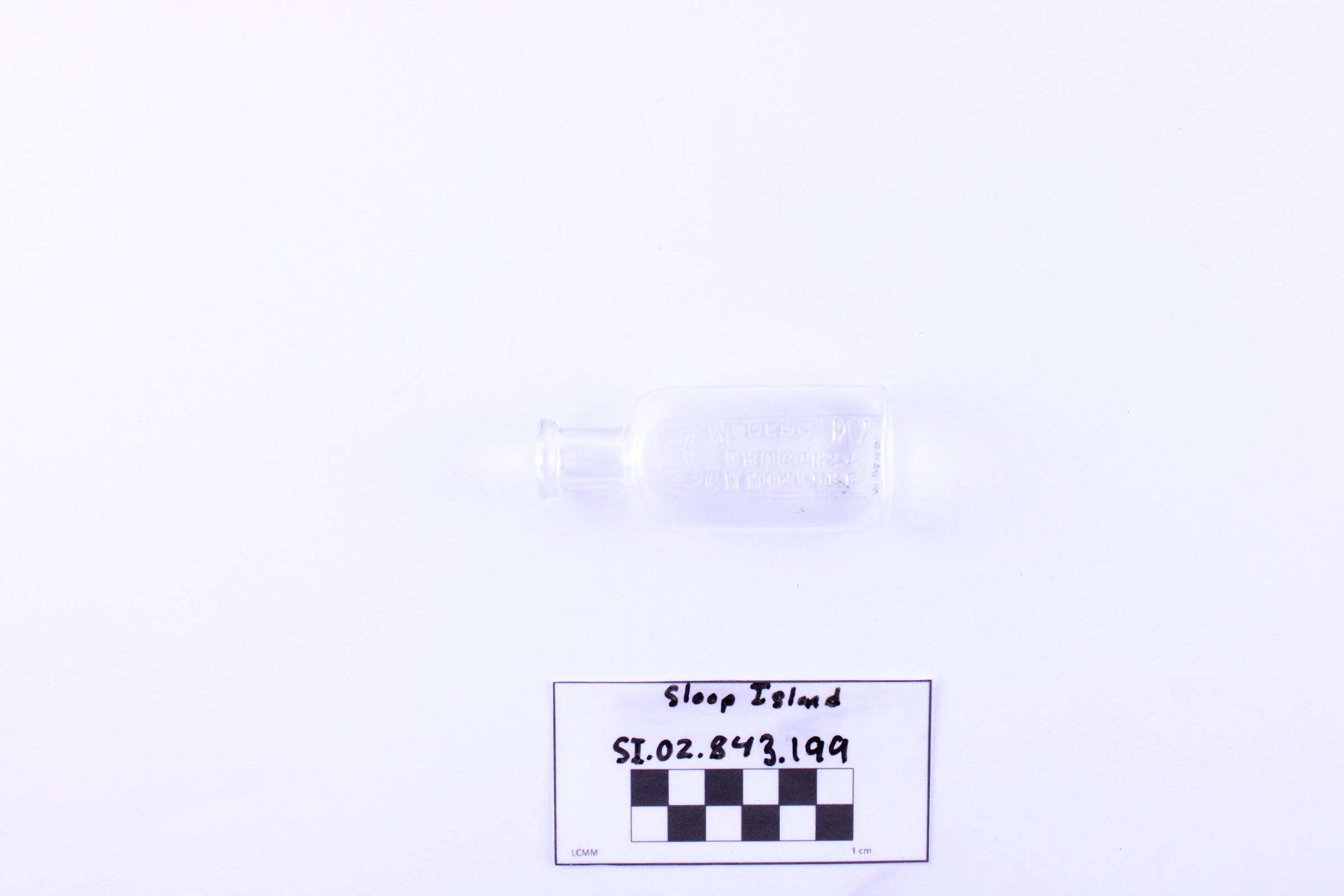 Object SI.02.843.199 is a small glass medicine bottle.