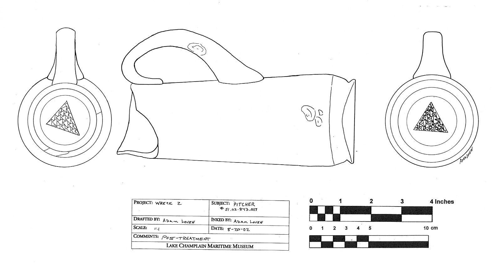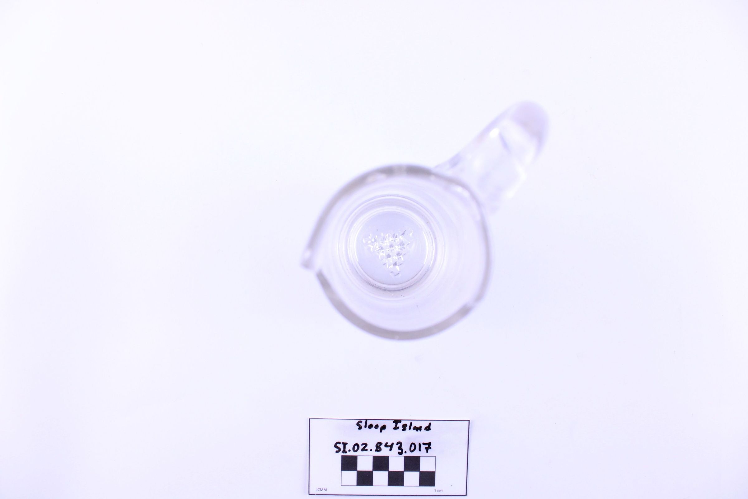 Object SI.02.843.017 is a chipped glass pitcher; this object was found with object SI.02.843.339, a cork.