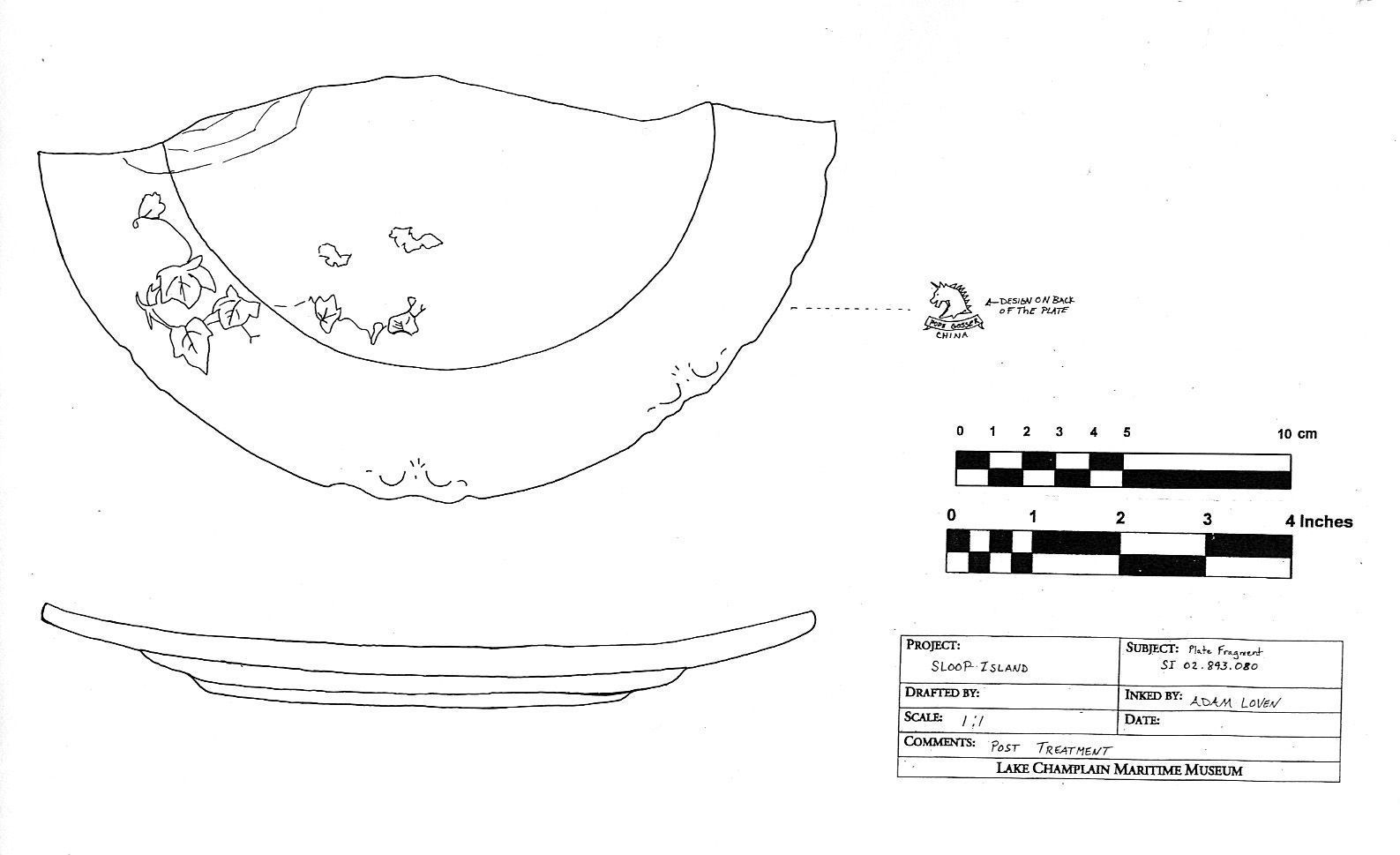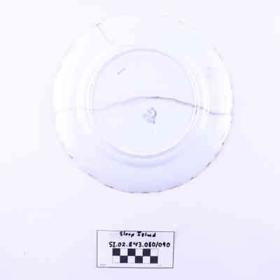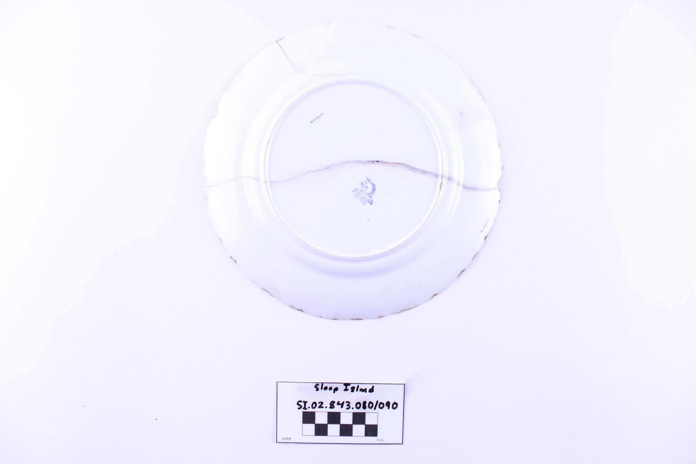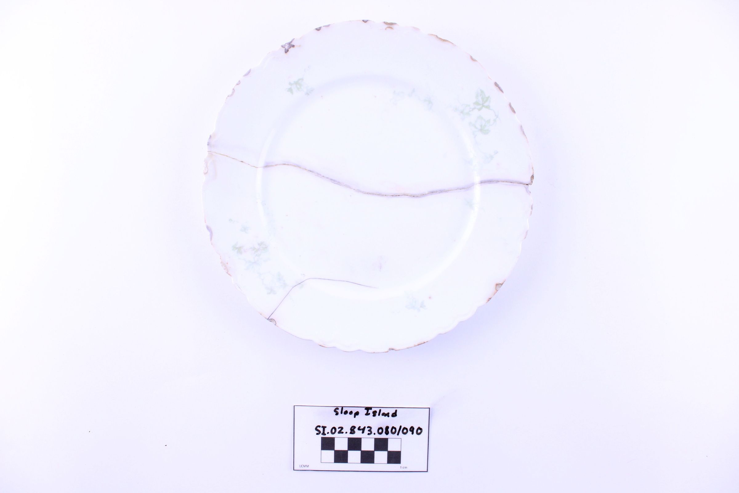Object SI.02.843.080/SI.02.843.090 is a whiteware ceramic plate; the object was once two fragments that have been adhered together during conservation