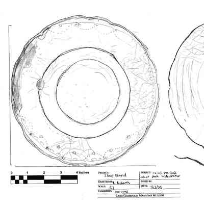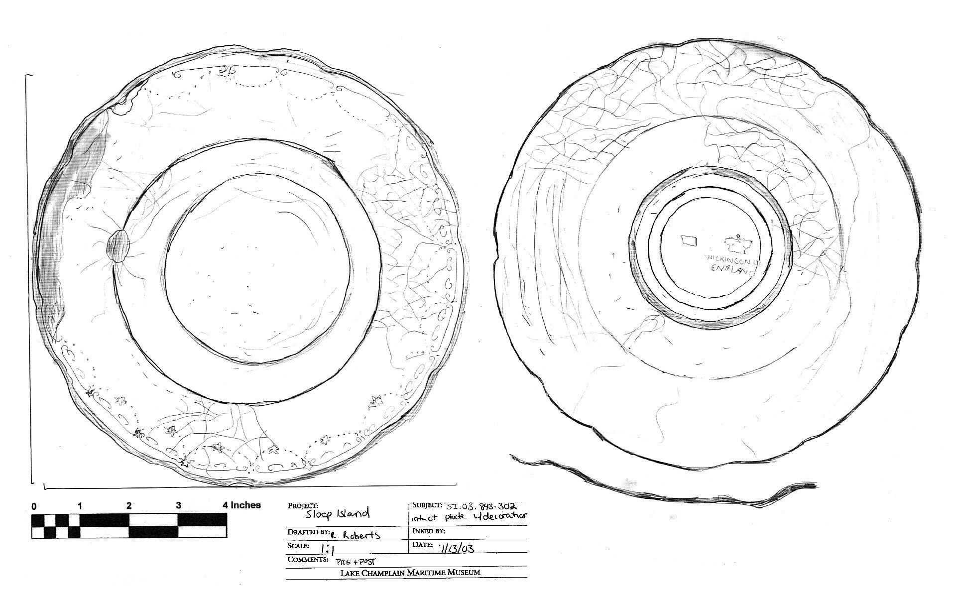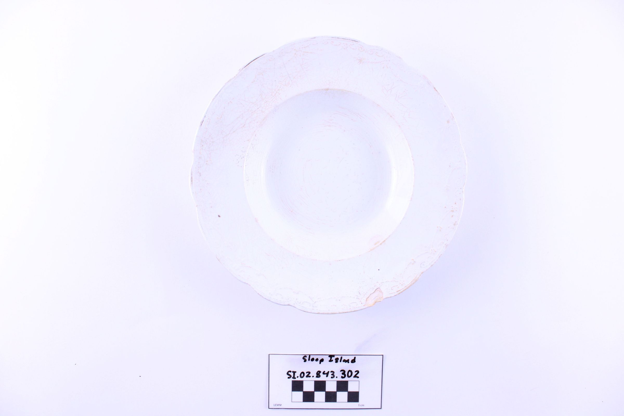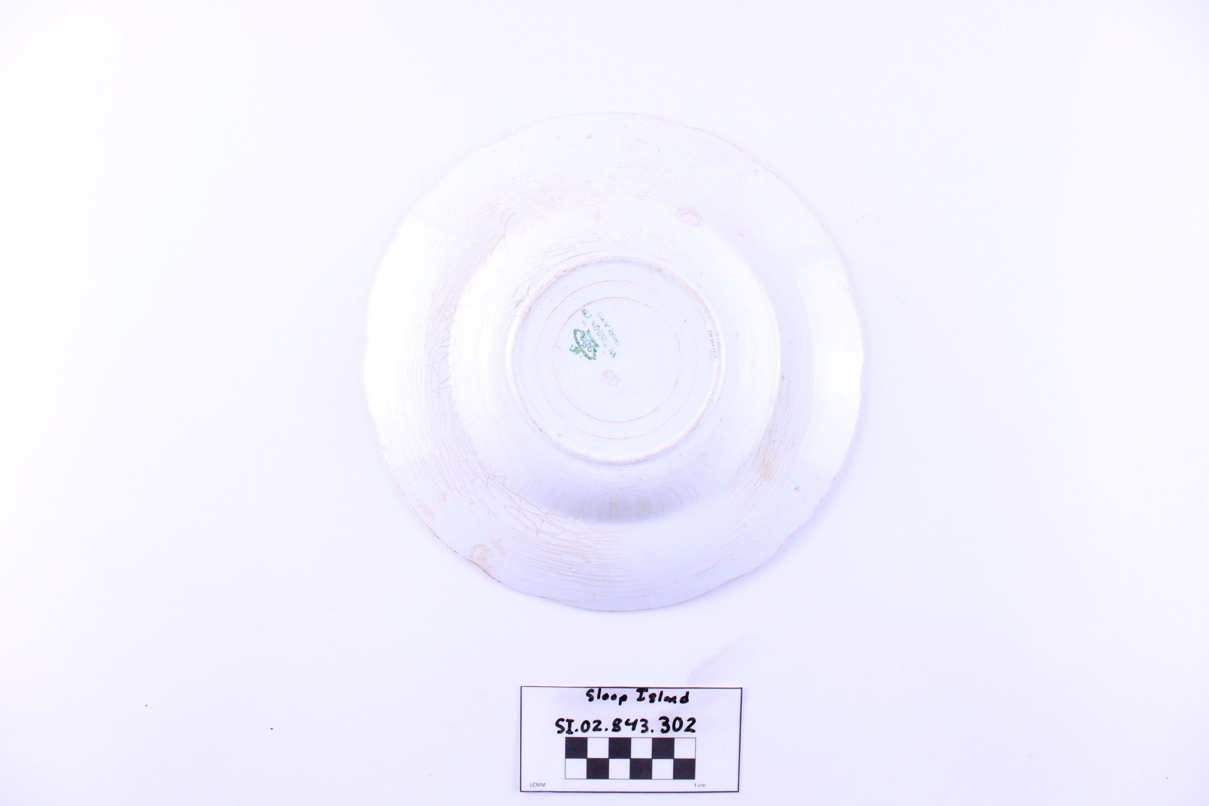 Object SI.03.843.302 is a whiteware ceramic plate with decoration