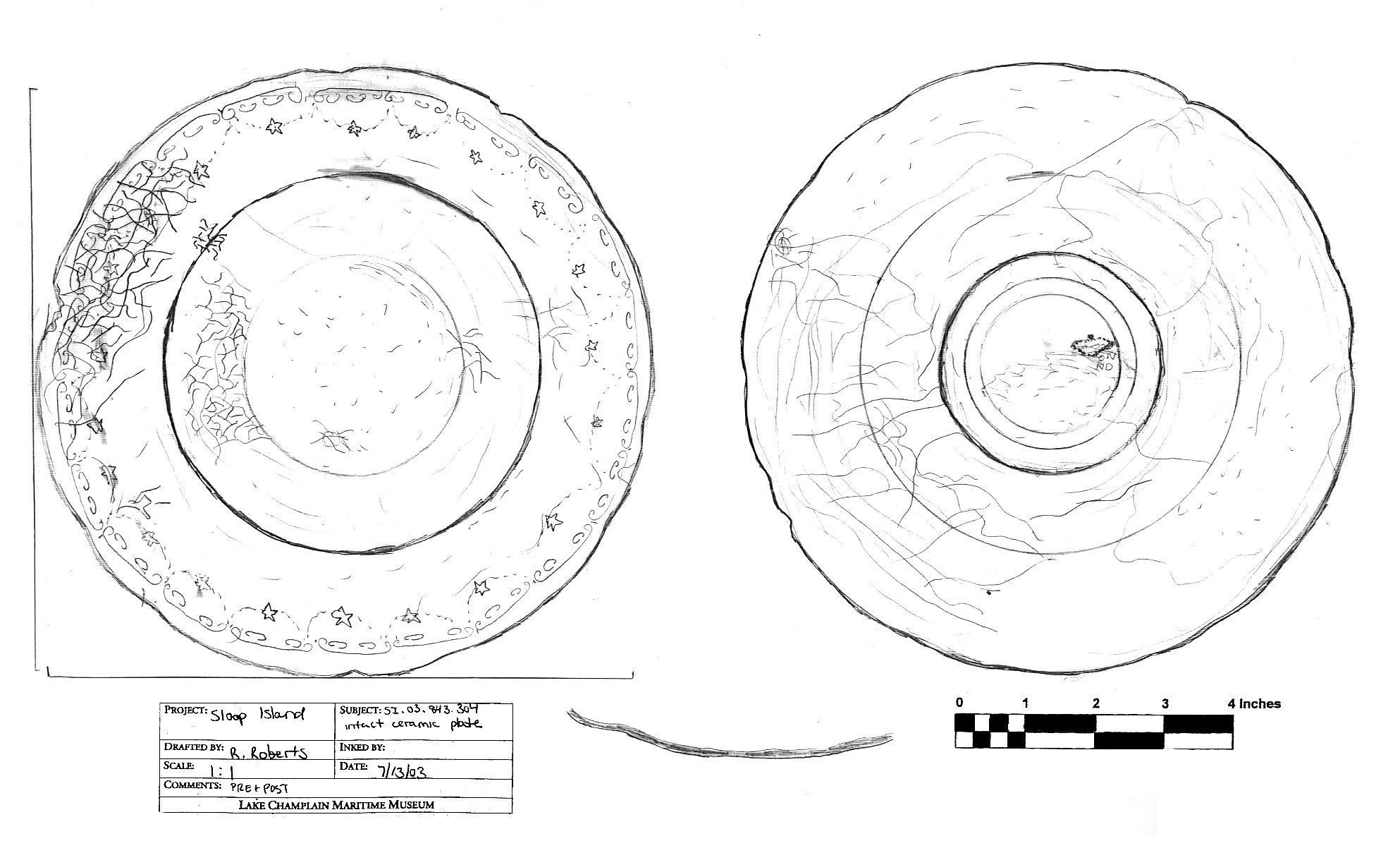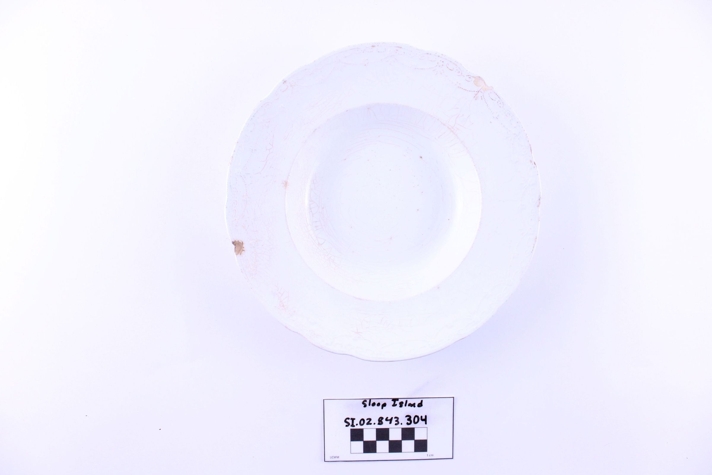 Object SI.03.843.304 is a whiteware ceramic plate with decoration