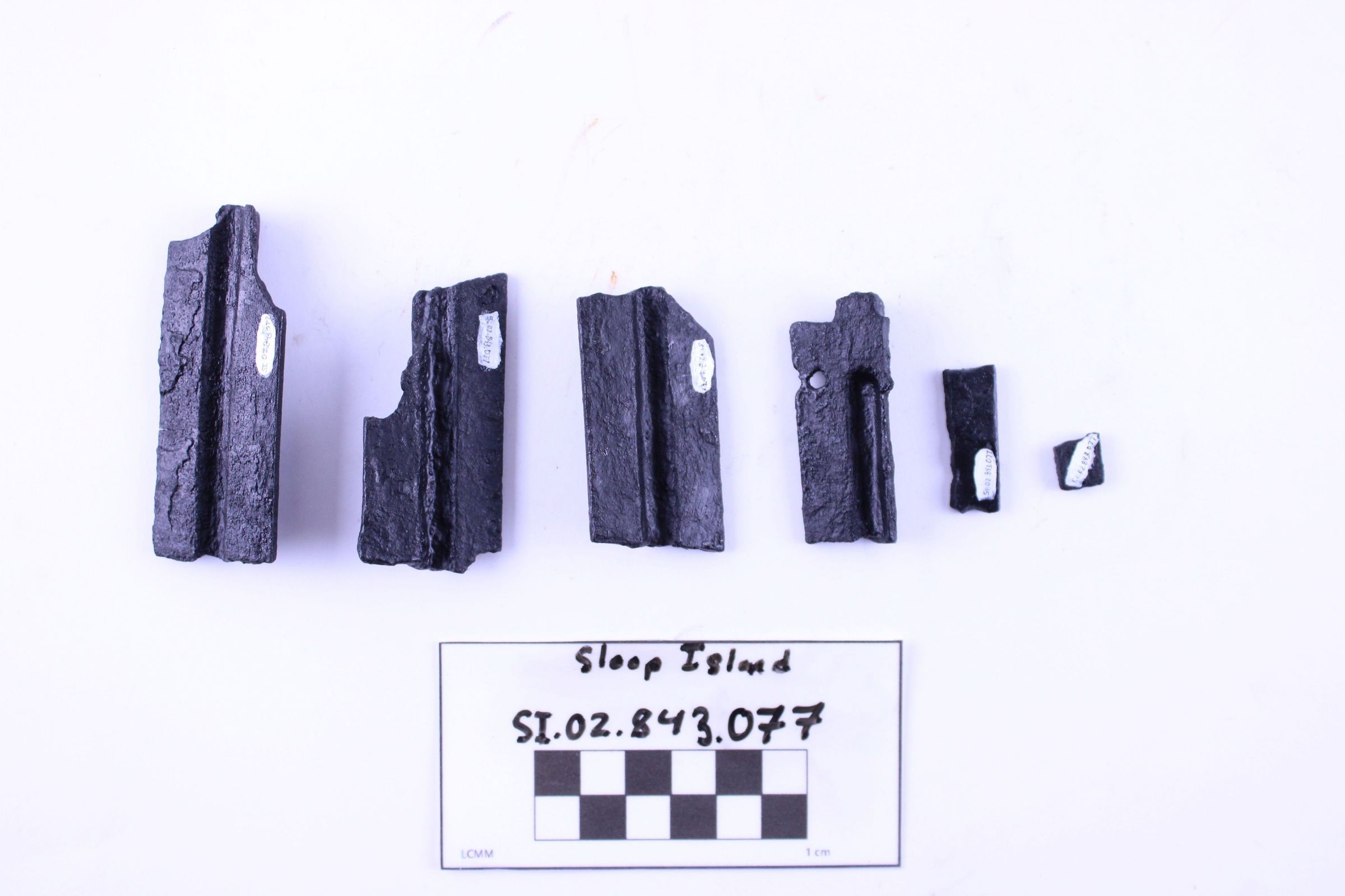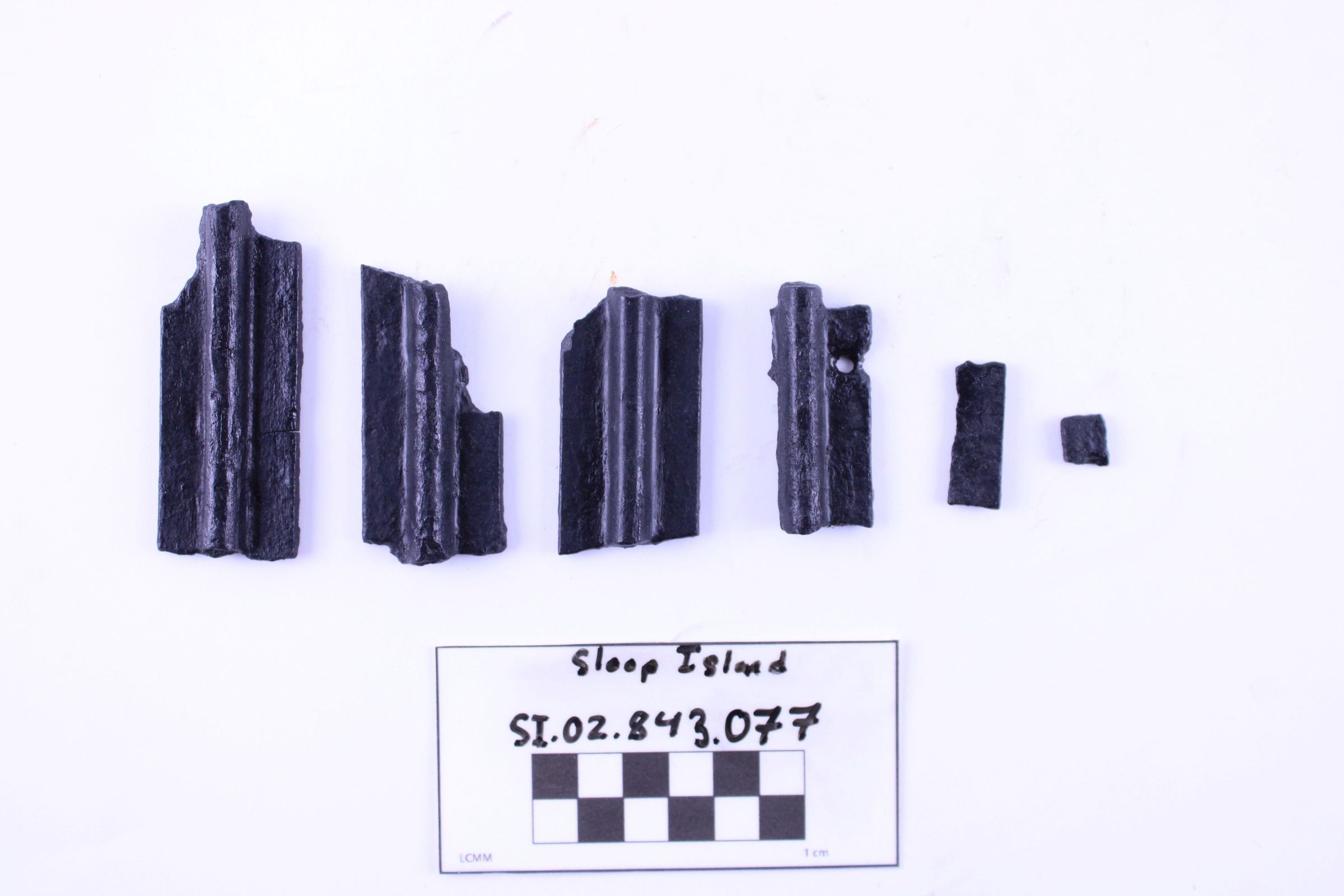Object SI.02.843.077 are six pieces of a sliding door track. Before conservation, this object was three pieces.
