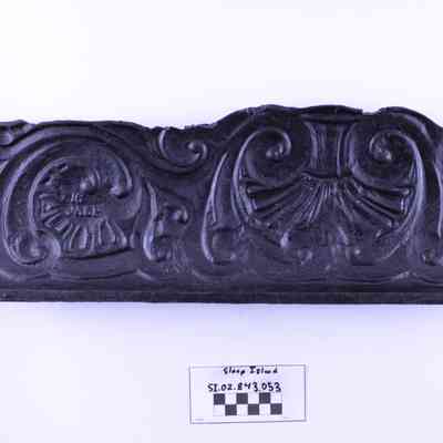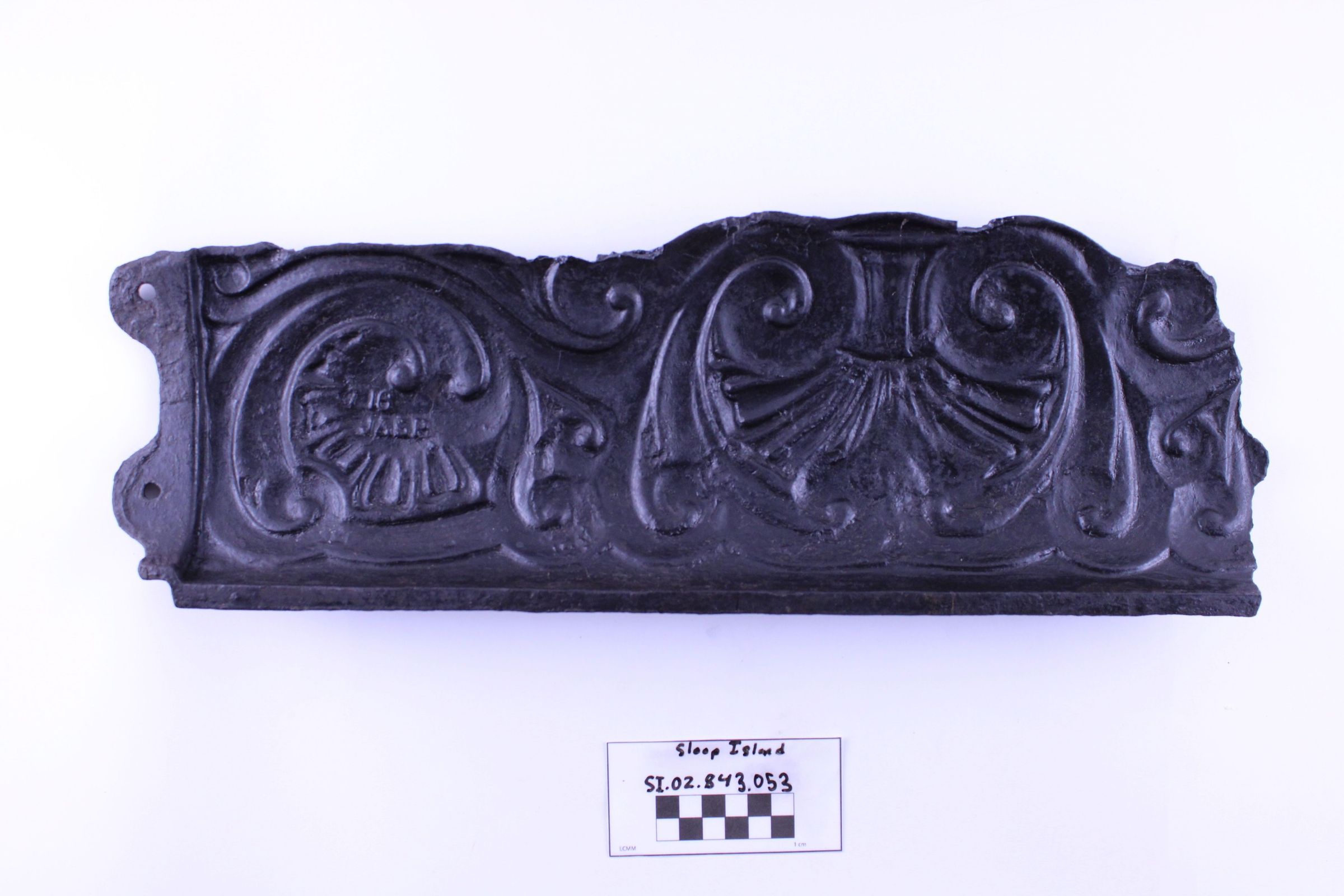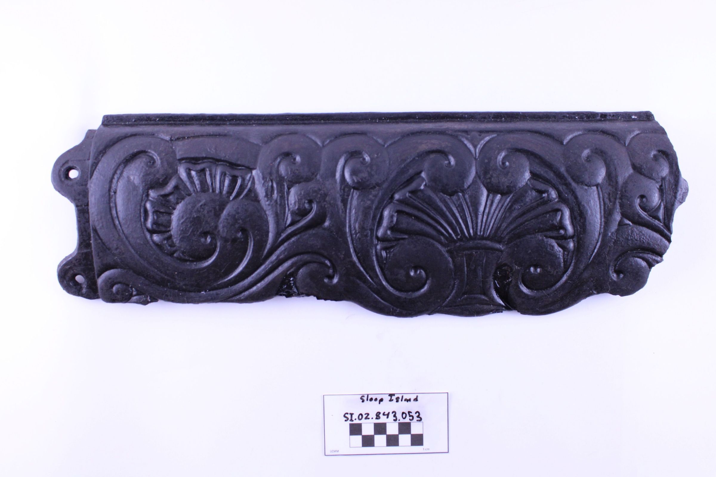Object SI.02.843.053 is a stove skirt, a piece of decorative iron that would have been located along the bottom of a coal or wood burning stove.
