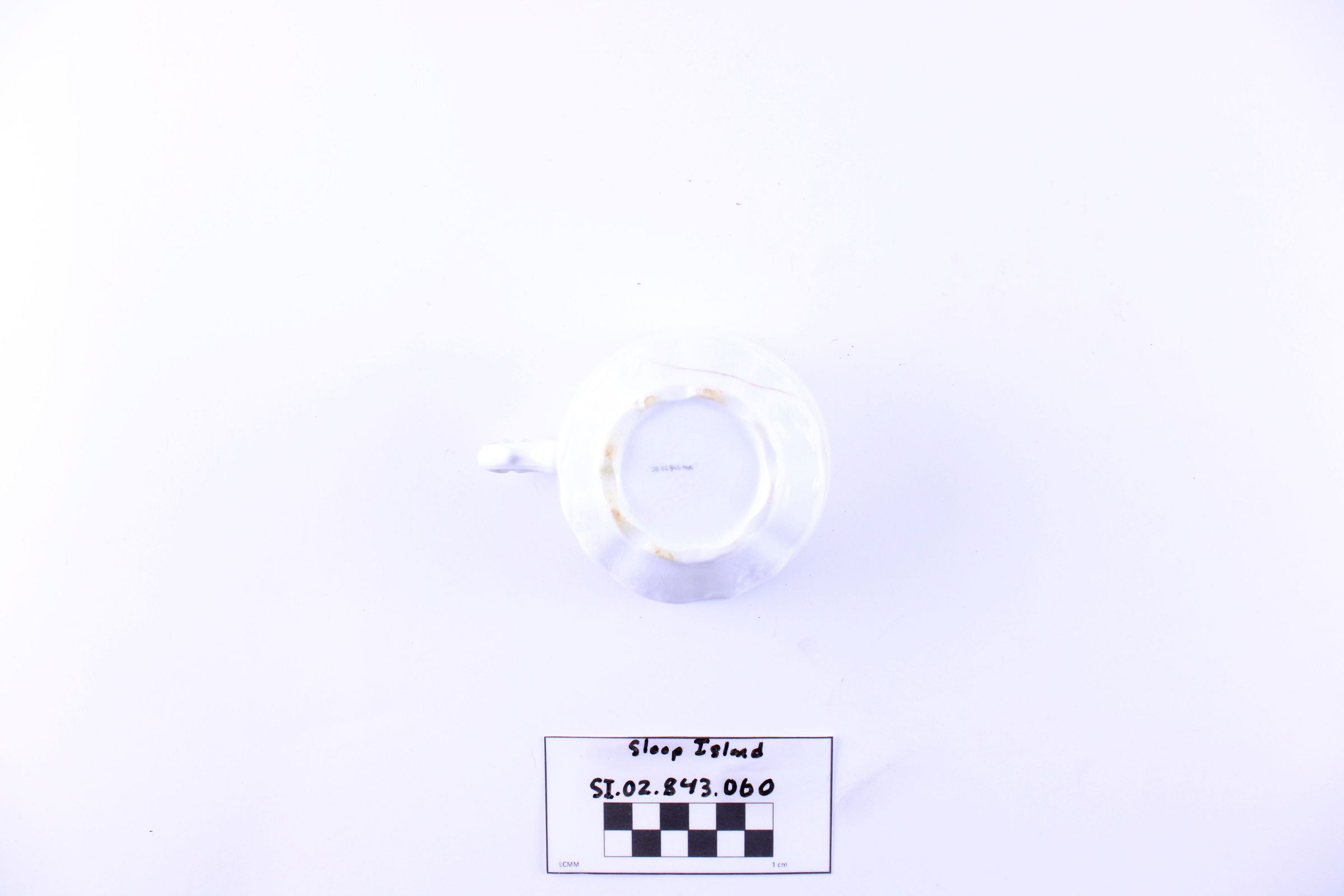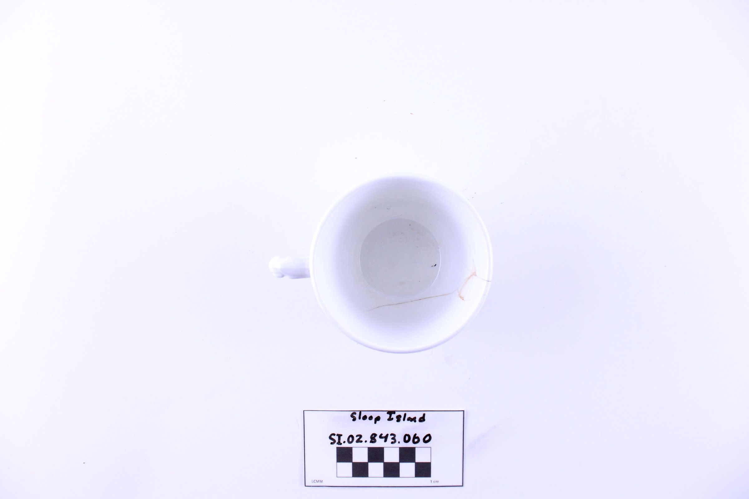 Object SI.02.843.060 is a whiteware teacup with an intact handle.