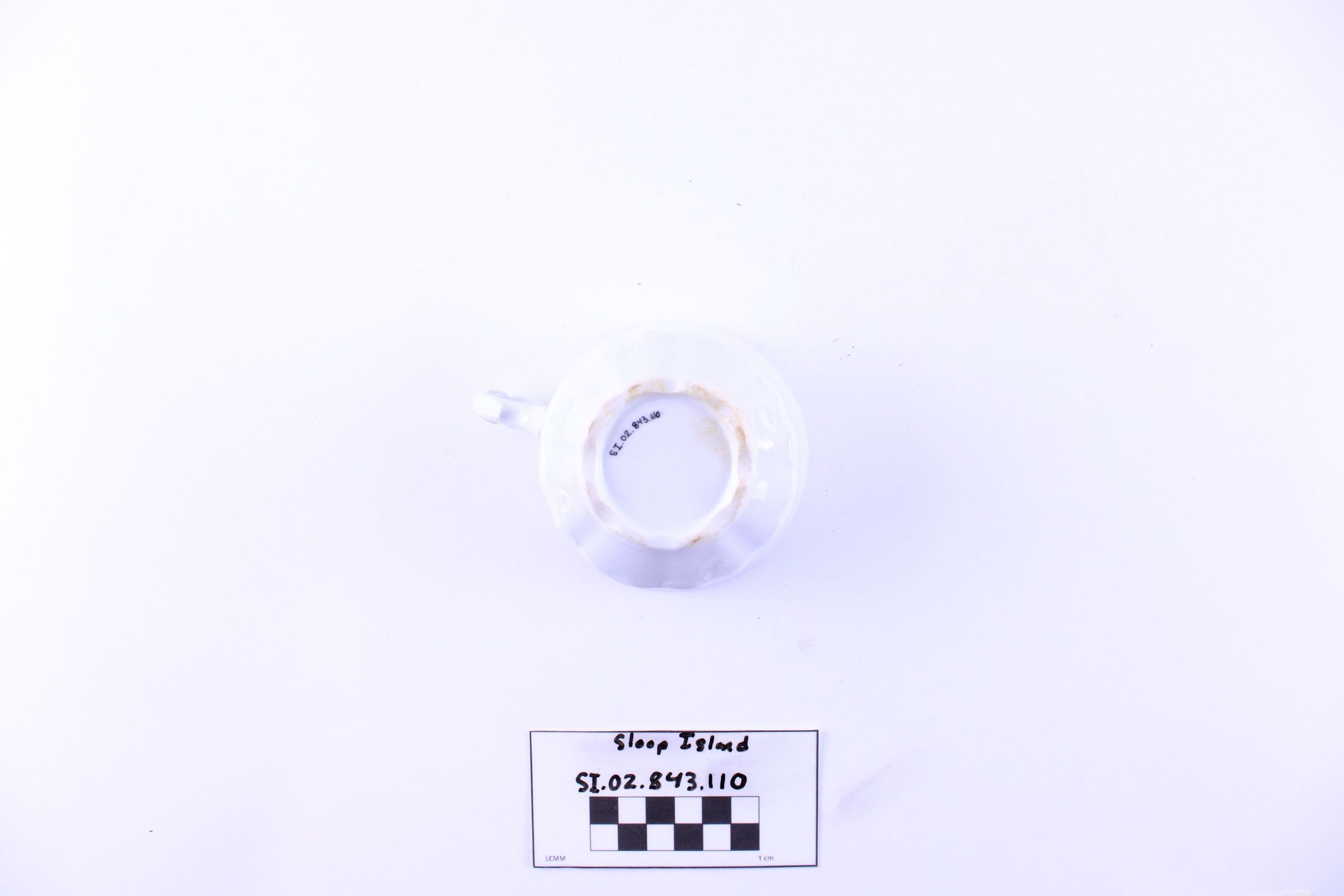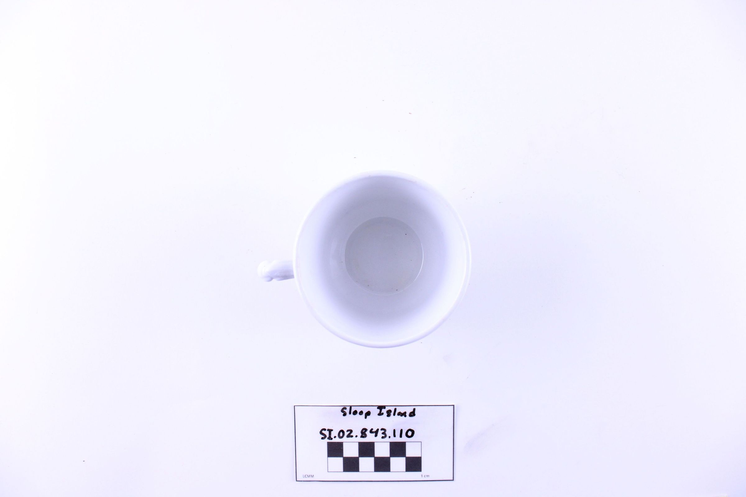 Object SI.02.843.110 is a whiteware teacup with an intact handle.